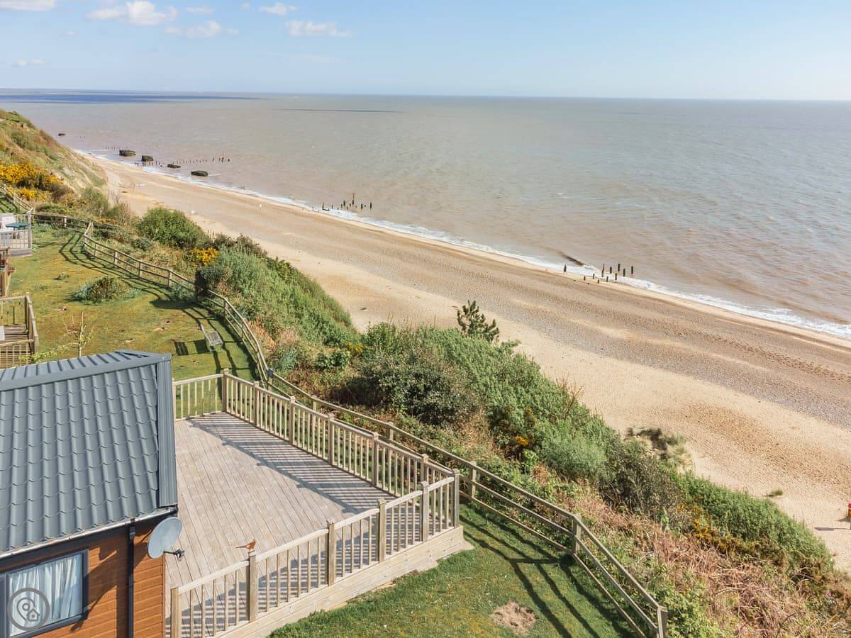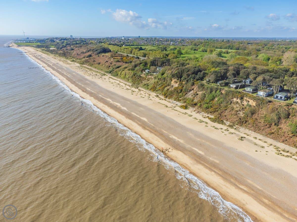The beach is just off the park. You can walk straight onto it. Corton itself is quiet. There's a local pub. If you want a town, Lowestoft is about ten minutes by car. It's a traditional seaside place with the usual stuff.