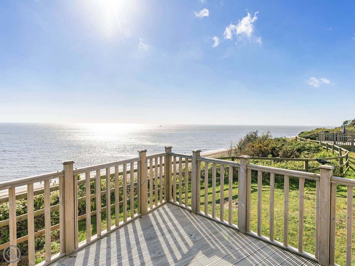 Phoenix Sunrise is a lodge on the Azure Seas Holiday Park in Corton. It's detached. You get your own deck and it's fenced, so it's private. The main thing is the view. You look straight out over the beach and the sea. The sun comes up right in front of you.