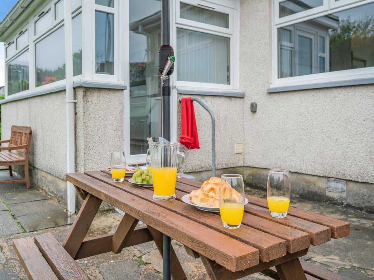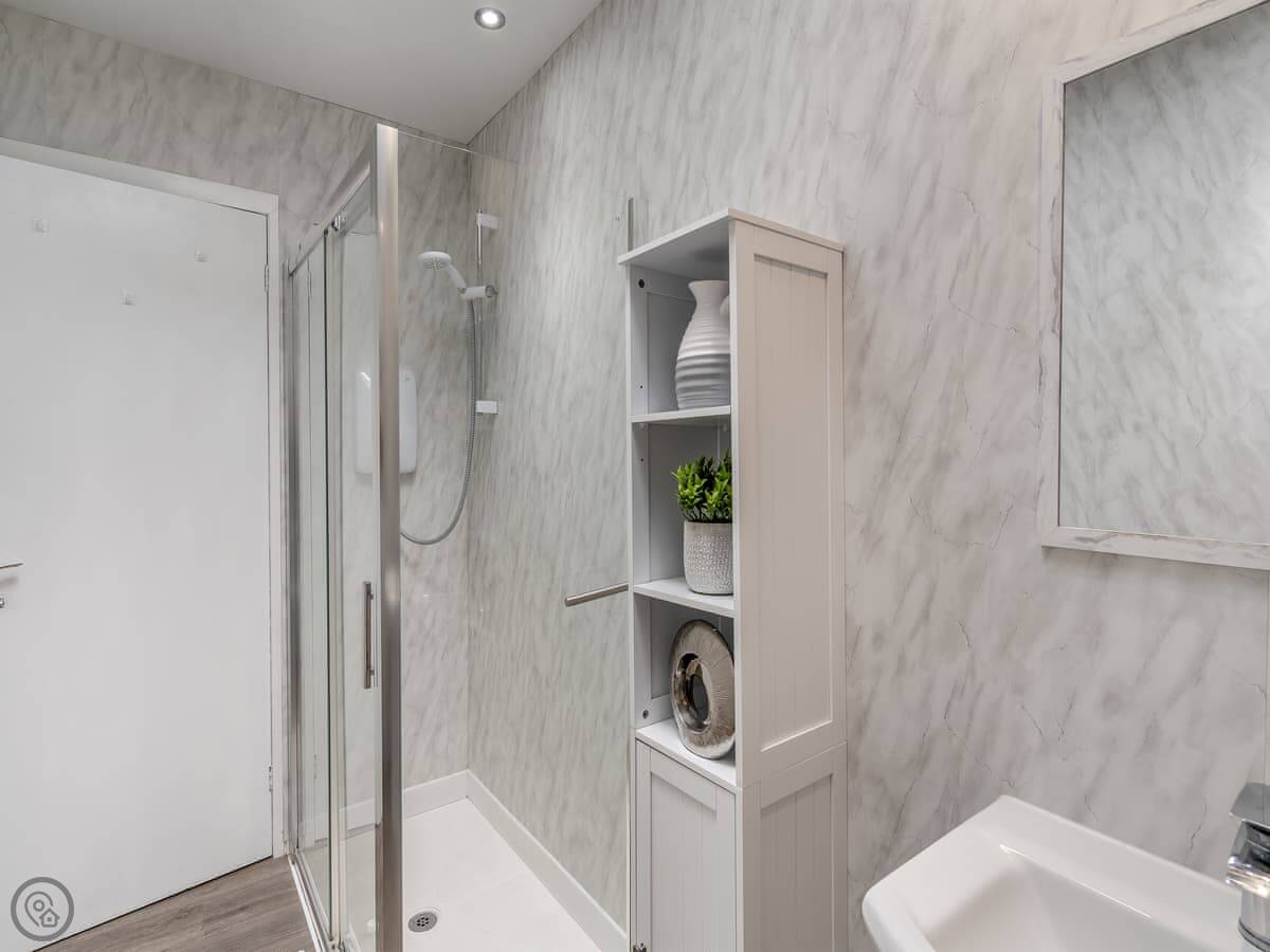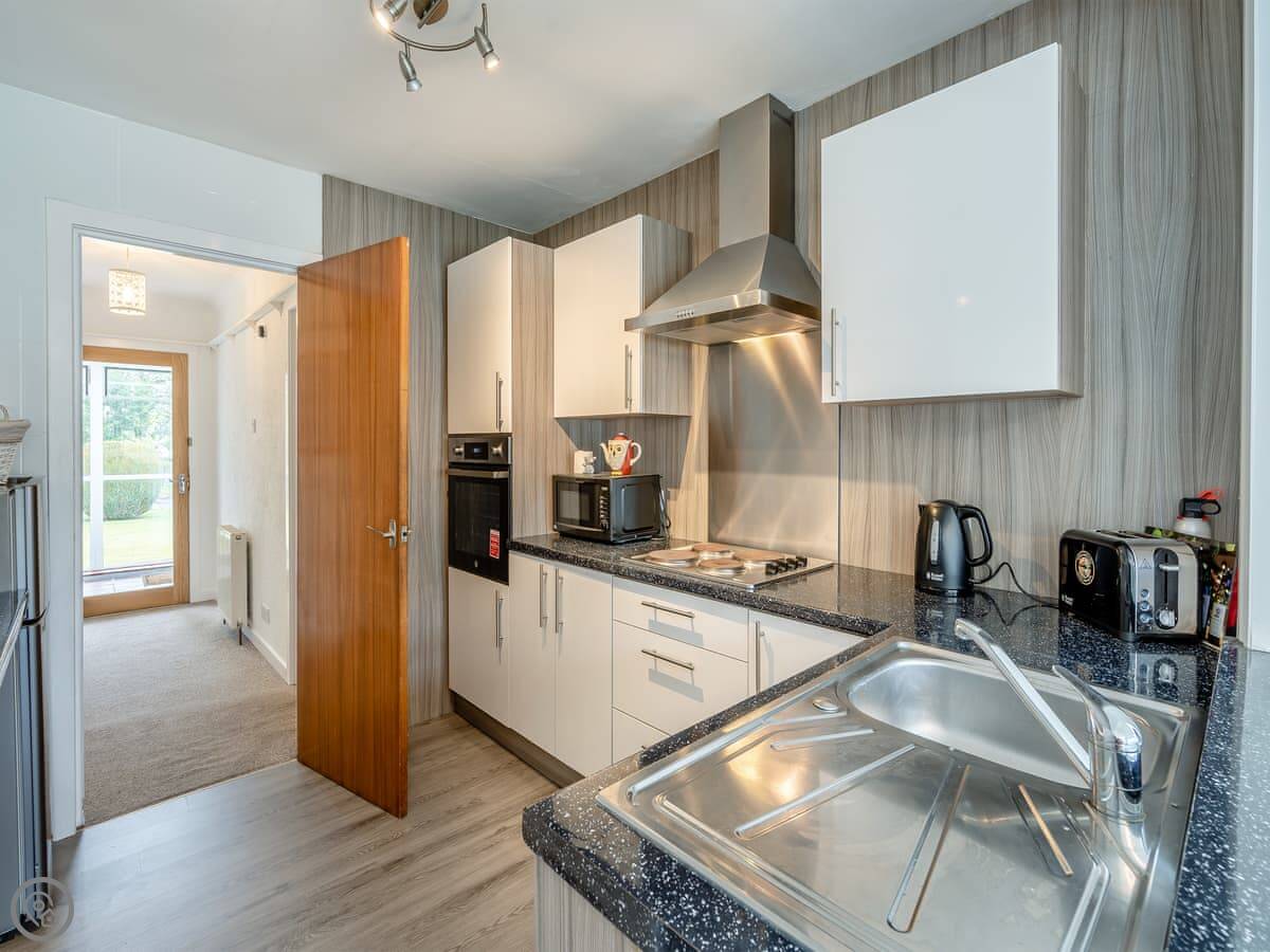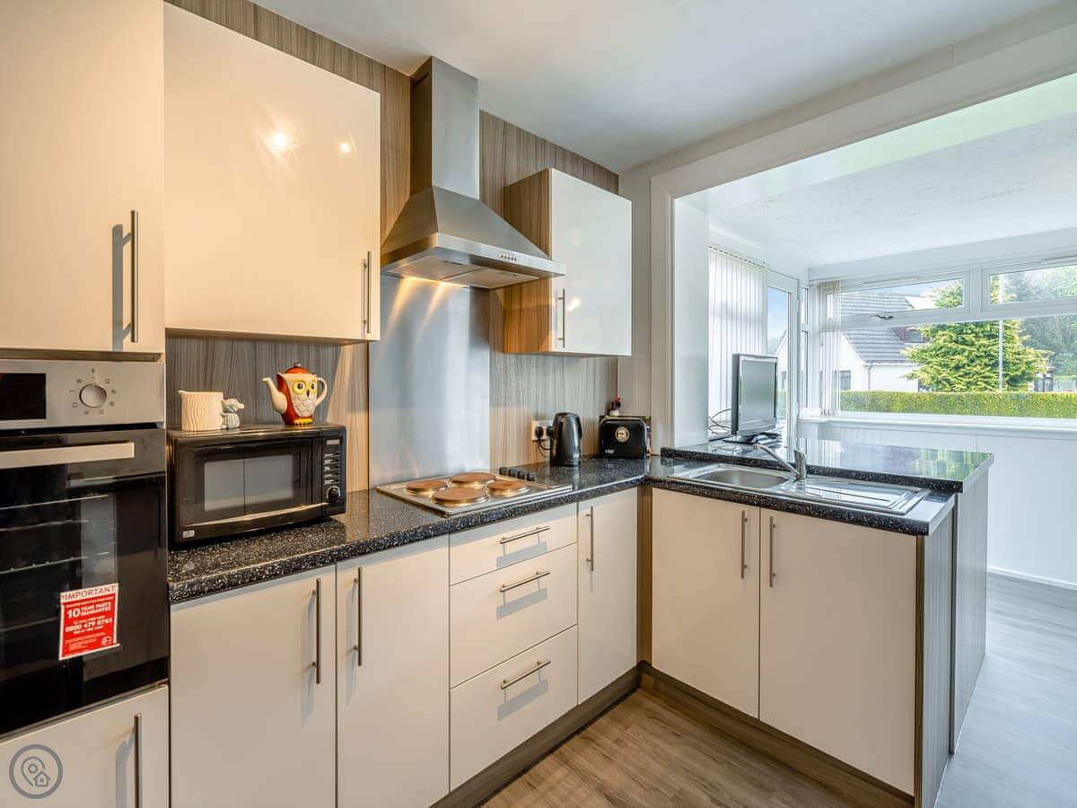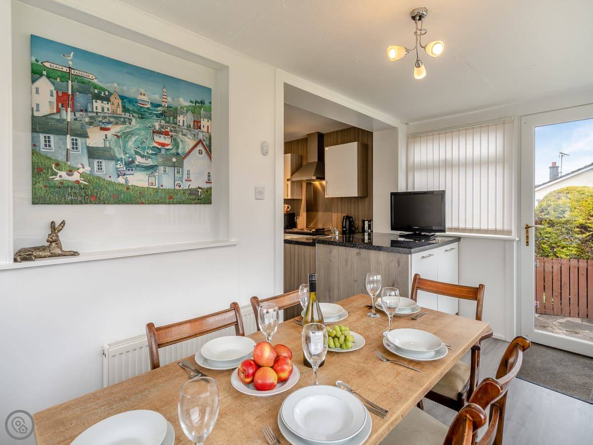 It sleeps six in three bedrooms. Two doubles and a twin. There's one bathroom with a good shower. The rating is 4 Star, which means it's well looked after and comfortable. It's not huge, but it's got everything you need. The kitchen is open plan into a sunroom where the dining table is, so it's a decent space for everyone to be together.