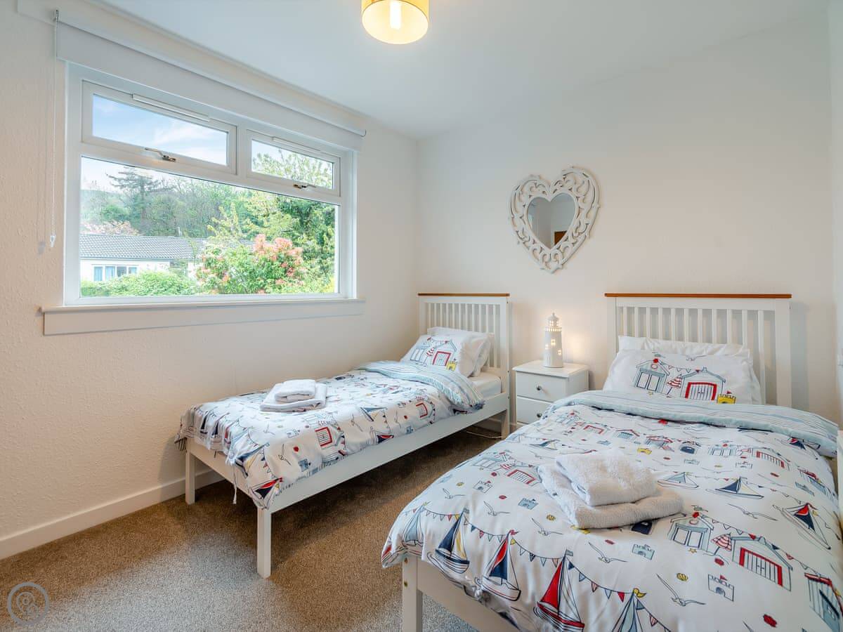 Lamlash is a proper village. It's got a couple of pubs that do food, a shop, a chip shop, cafes. The bay is right there. You can walk along the shore in five minutes. You can sometimes see seals from the pier. The beach is about a fifteen minute walk from the house.