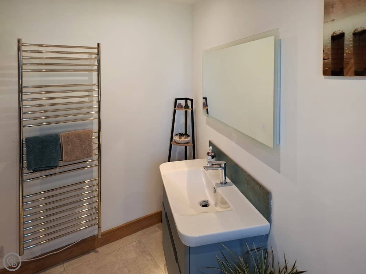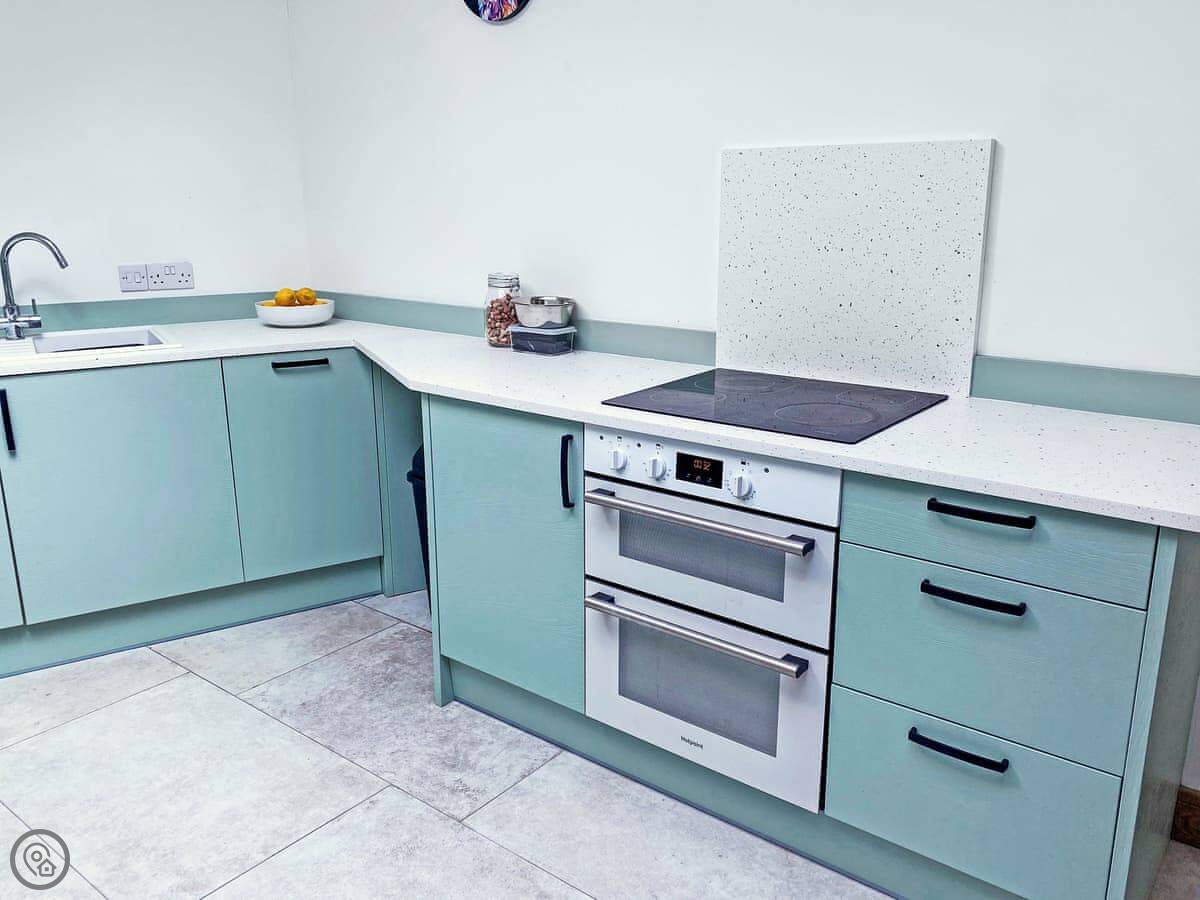 The living area is open-plan, which is good if you're all together. The kitchen is a bit old-fashioned but it works fine and has a dishwasher. The shower is a good size.