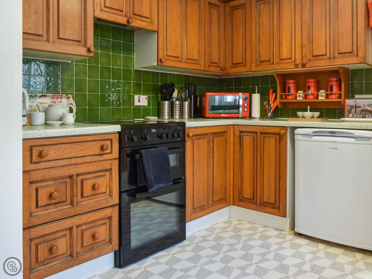 Downstairs there's a living room with a TV, and then an open-plan dining area with another lounge space off the kitchen. The kitchen has what you need. There's a separate utility room with a washing machine, which is handy.