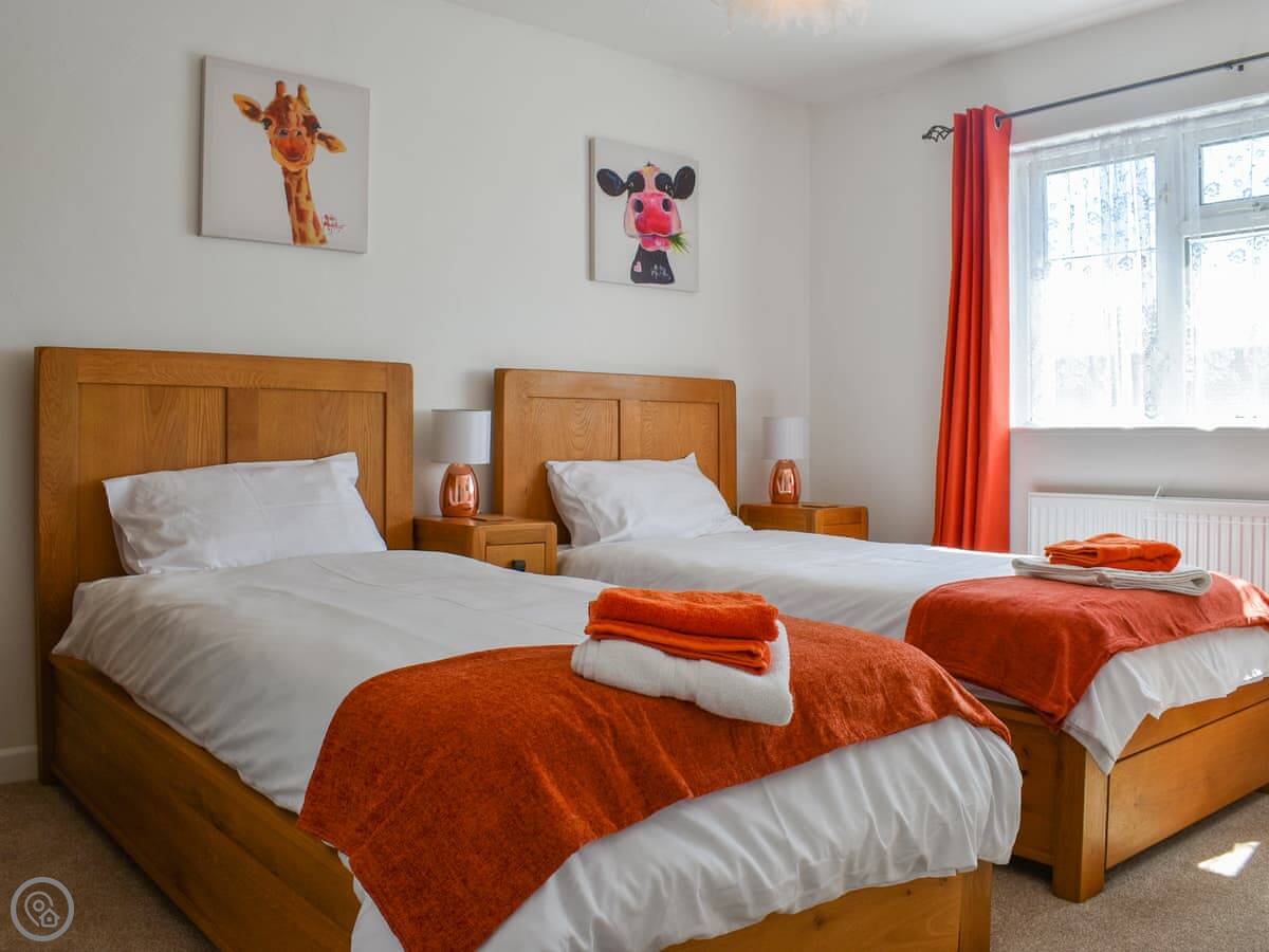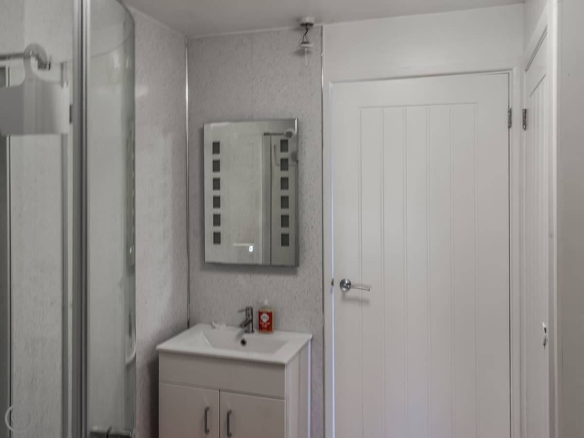 The main bedroom is arranged a bit unusually. You walk through the en-suite shower room to get to it. It has patio doors out to the garden. There's a second double room and a twin room. The main bathroom upstairs has both a bath and a separate shower.