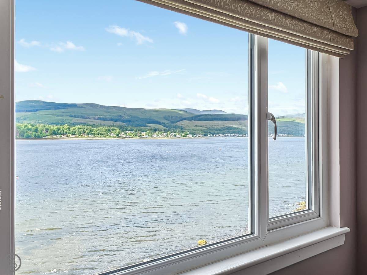 Holy Loch View is an apartment in Strone, on the Cowal peninsula. It's about two miles outside Dunoon. The view from the living room is straight down the Holy Loch. That's the main thing.