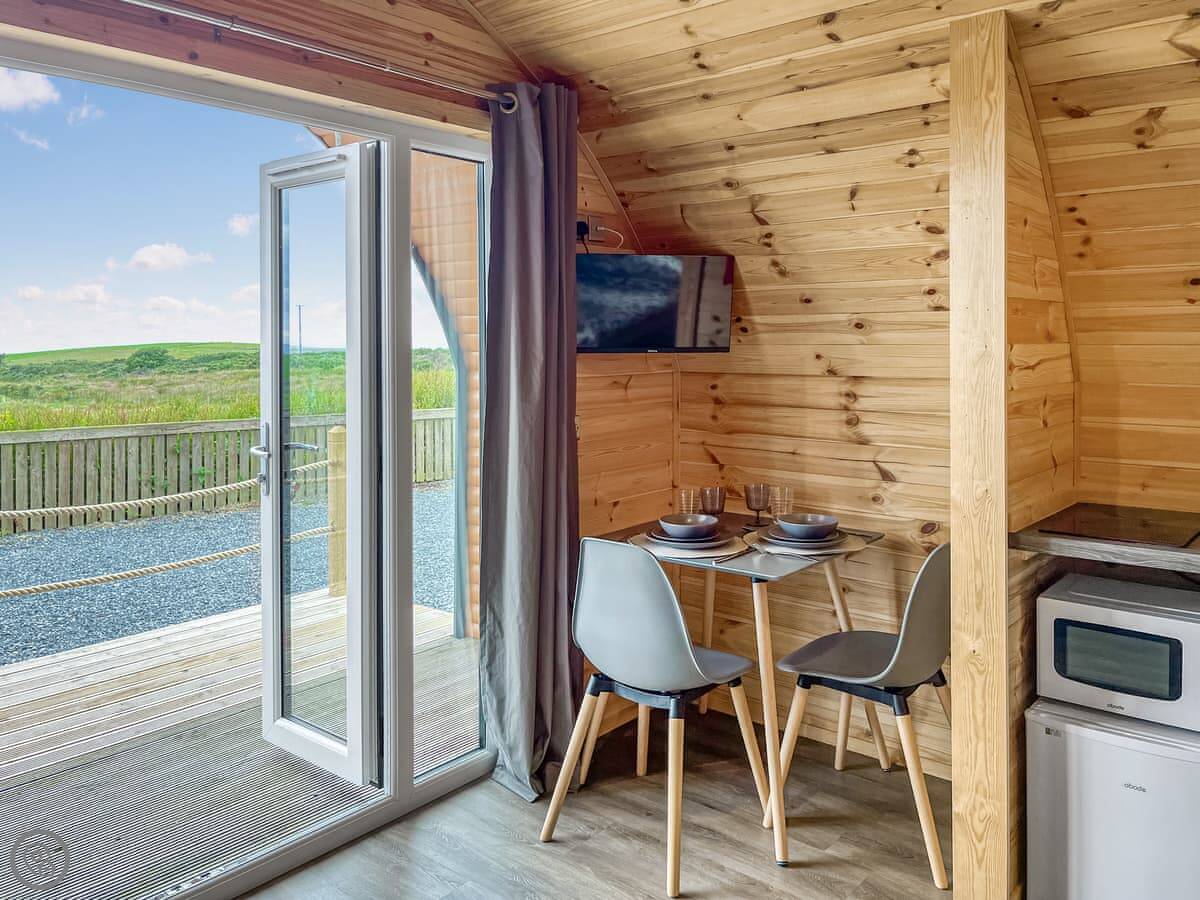 This is Douglas. It's a pod on a farm near Cairngarroch, in the Rhins of Galloway. It's one of two pods here, called Douglas and Keith. They're separate from each other and you get your own bit outside.