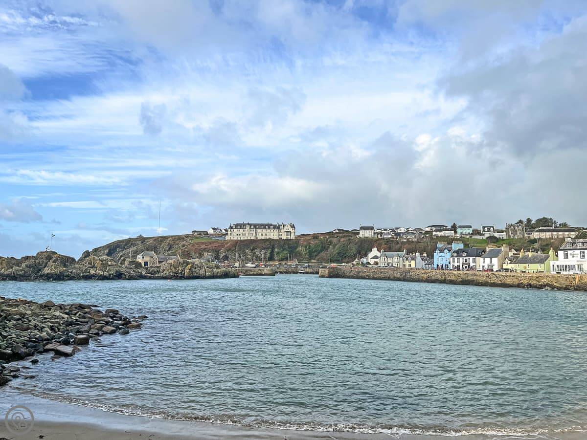 Portpatrick is about ten minutes by car. It's a small harbour village with pubs and places to eat. The Southern Upland Way passes nearby if you like walking. The cliffs are good. You can see Dunskey Castle from the path.