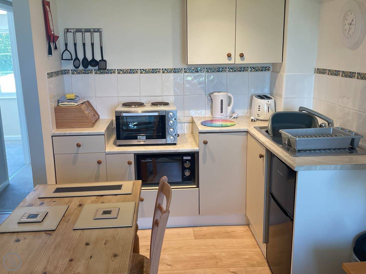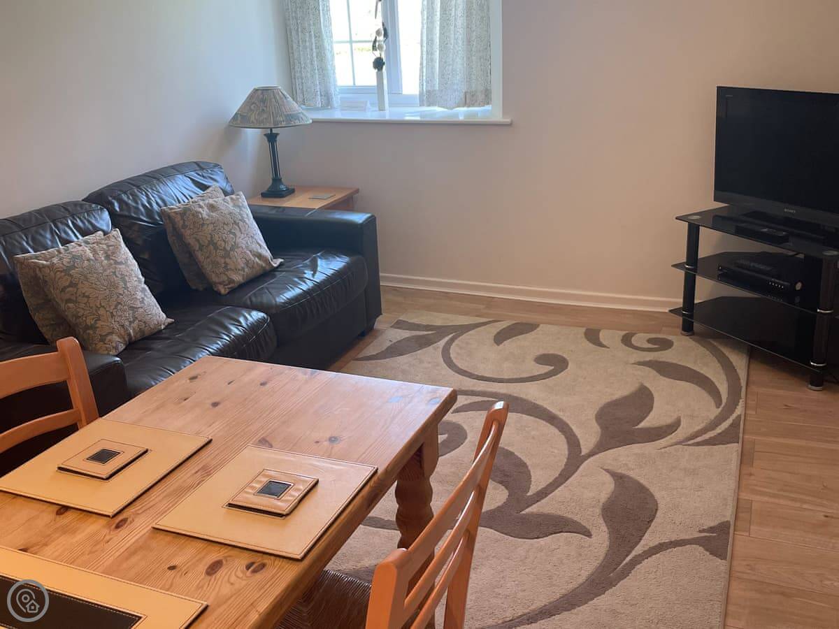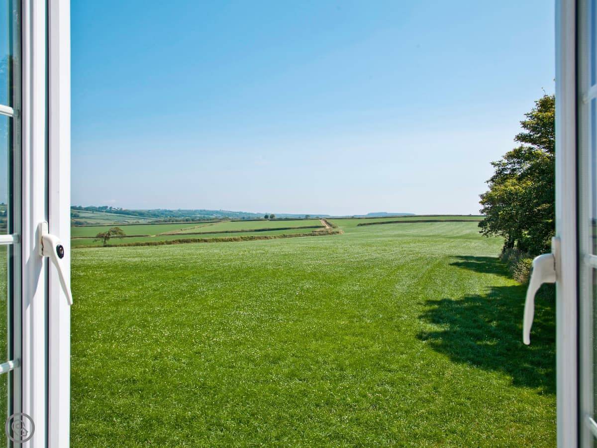 The apartment is on the ground floor. Open plan living. It's in a block of fifteen properties on a big site, about twelve acres. You get outstanding views over the Devon countryside.