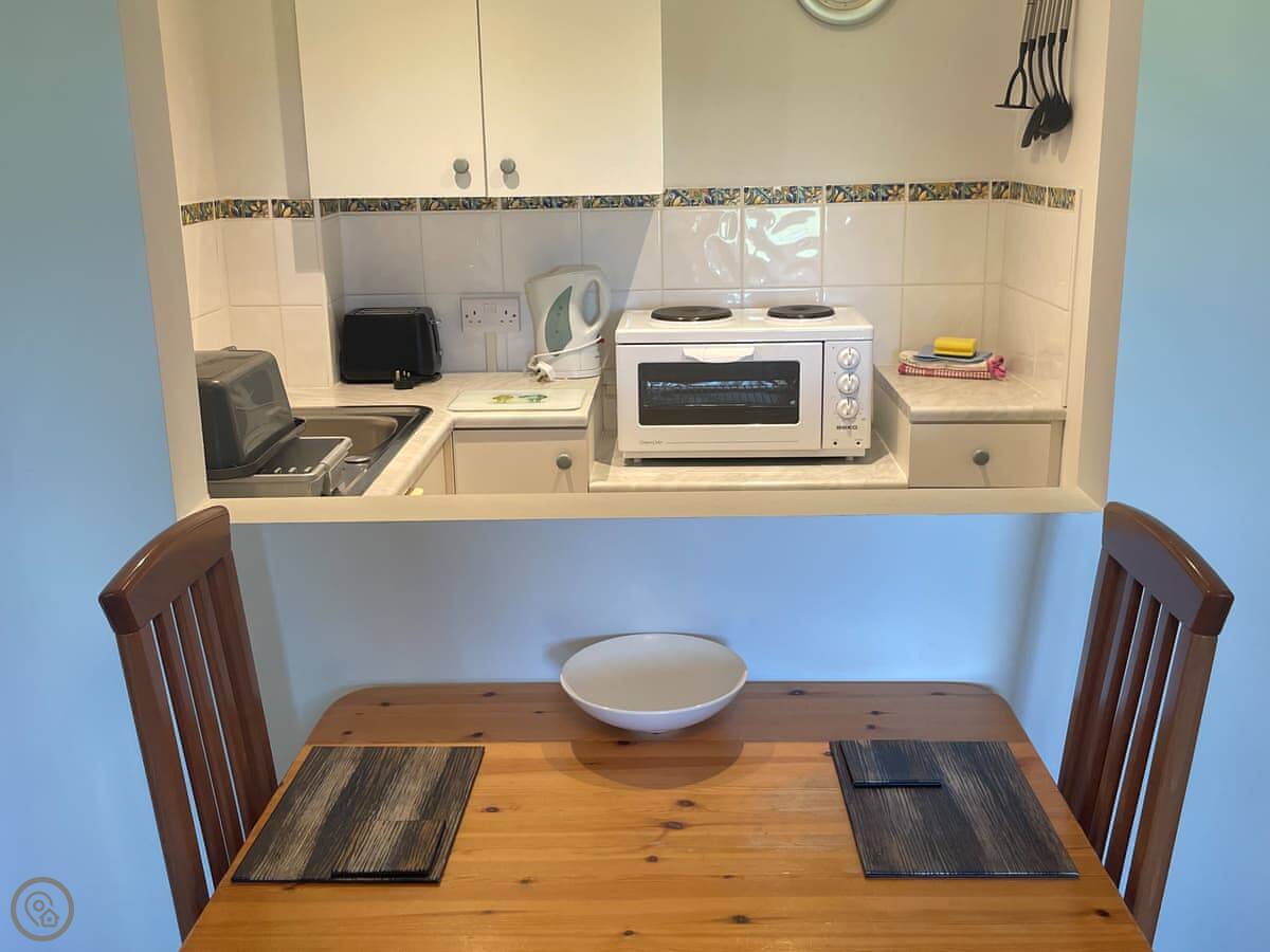 Hawfinch Apartment is part of Moorhead Country Holidays, near the village of Venn in North Devon. It's a one bedroom place, sleeps two. You're on a 12 acre site with a few other holiday apartments, so it's quiet but you're not totally isolated.