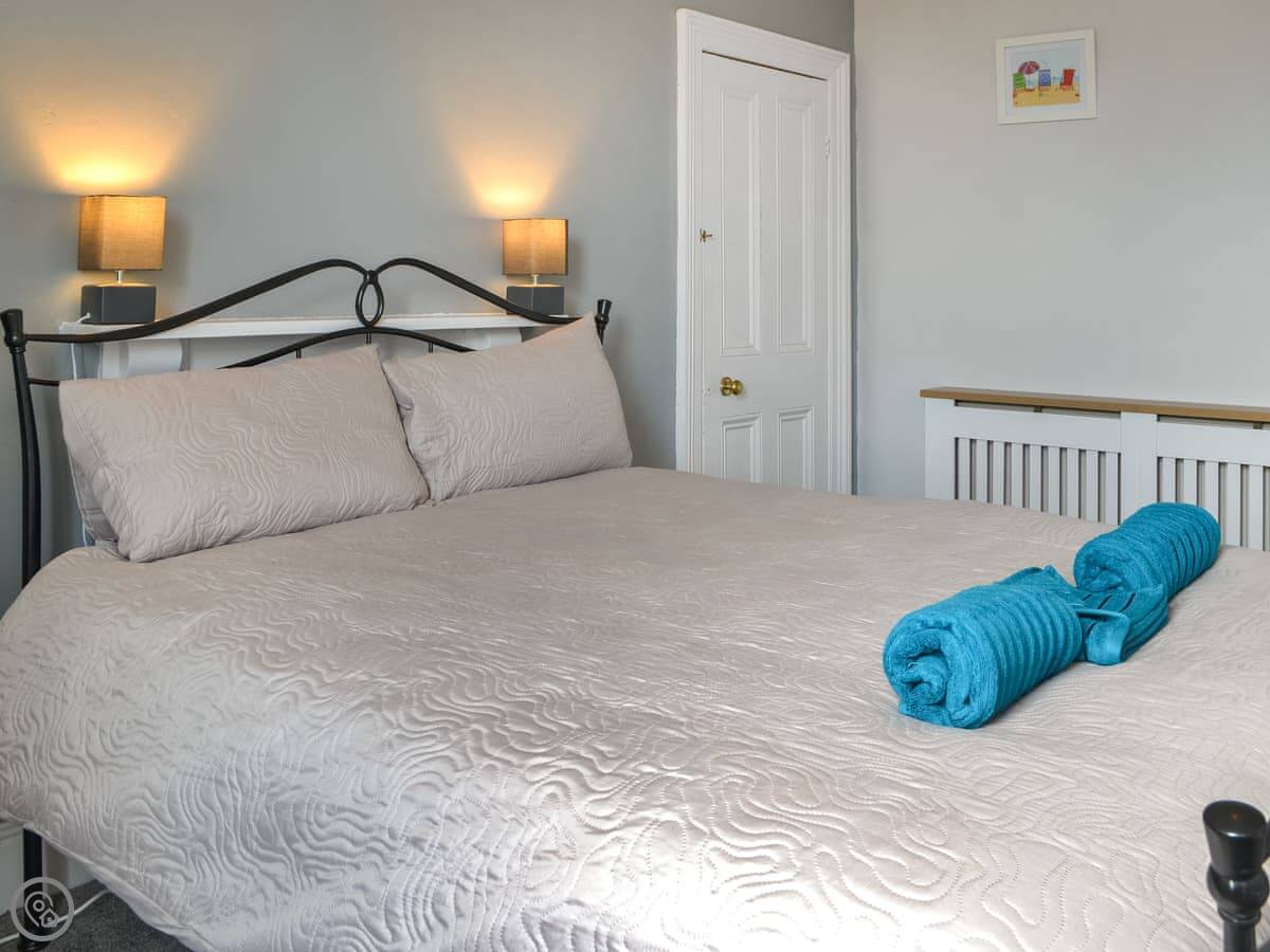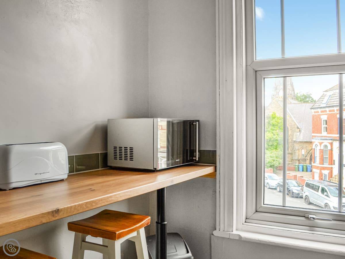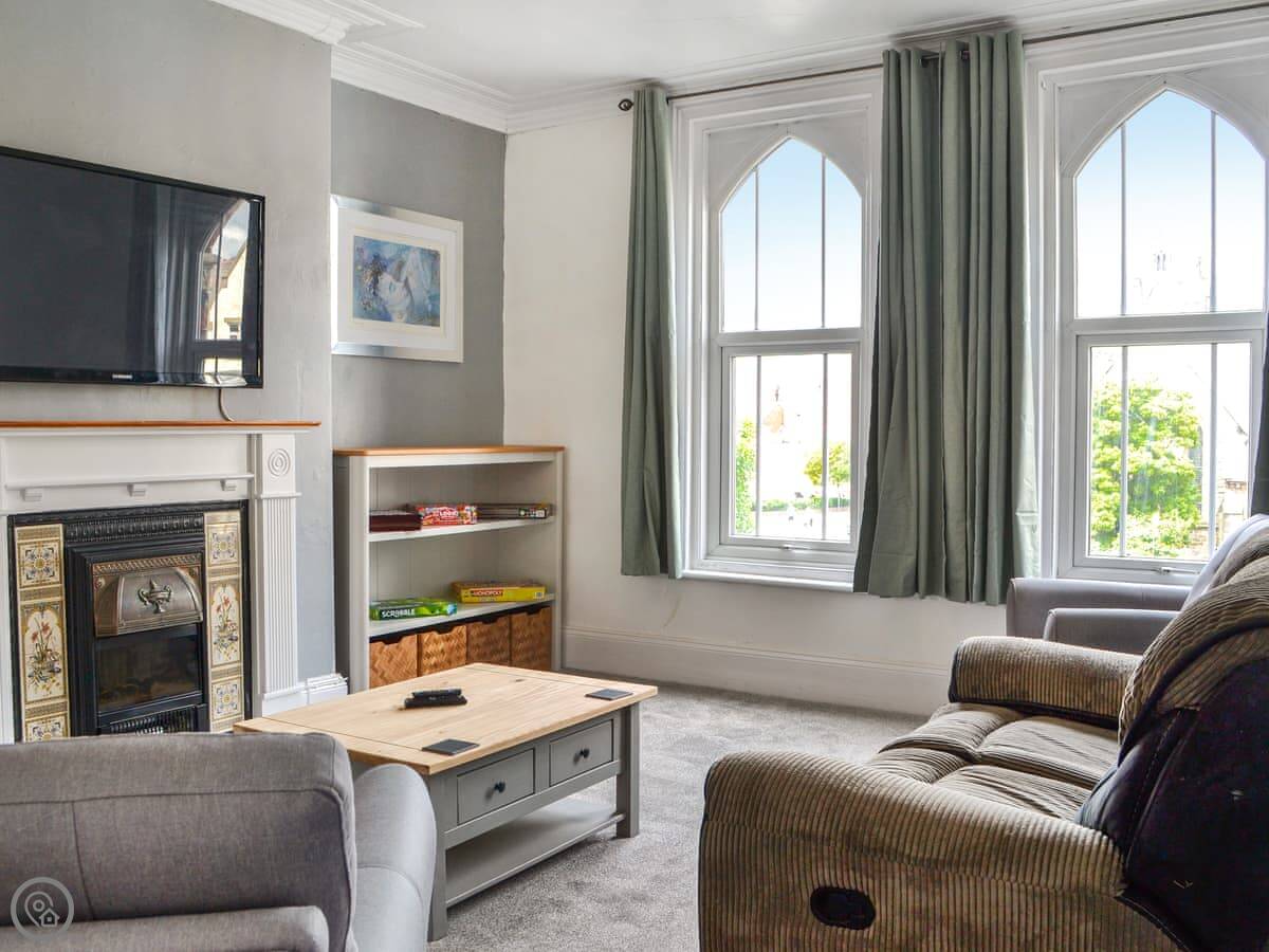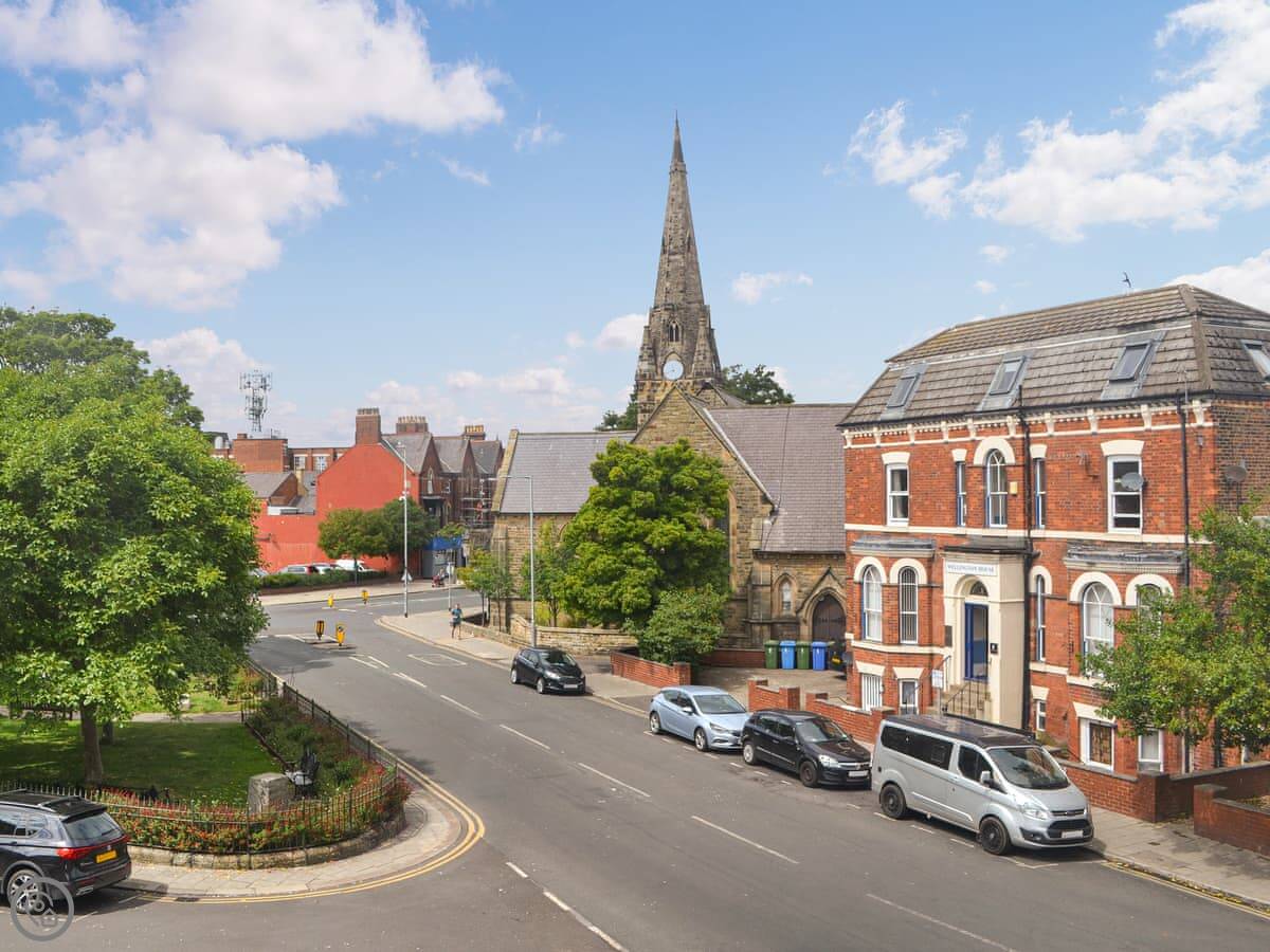 The Church View Apartment is on the first floor of a building right on the edge of Bridlington town centre. It’s a one-bed place, sleeps two. You can see the church and memorial garden from the big bay window in the front room.