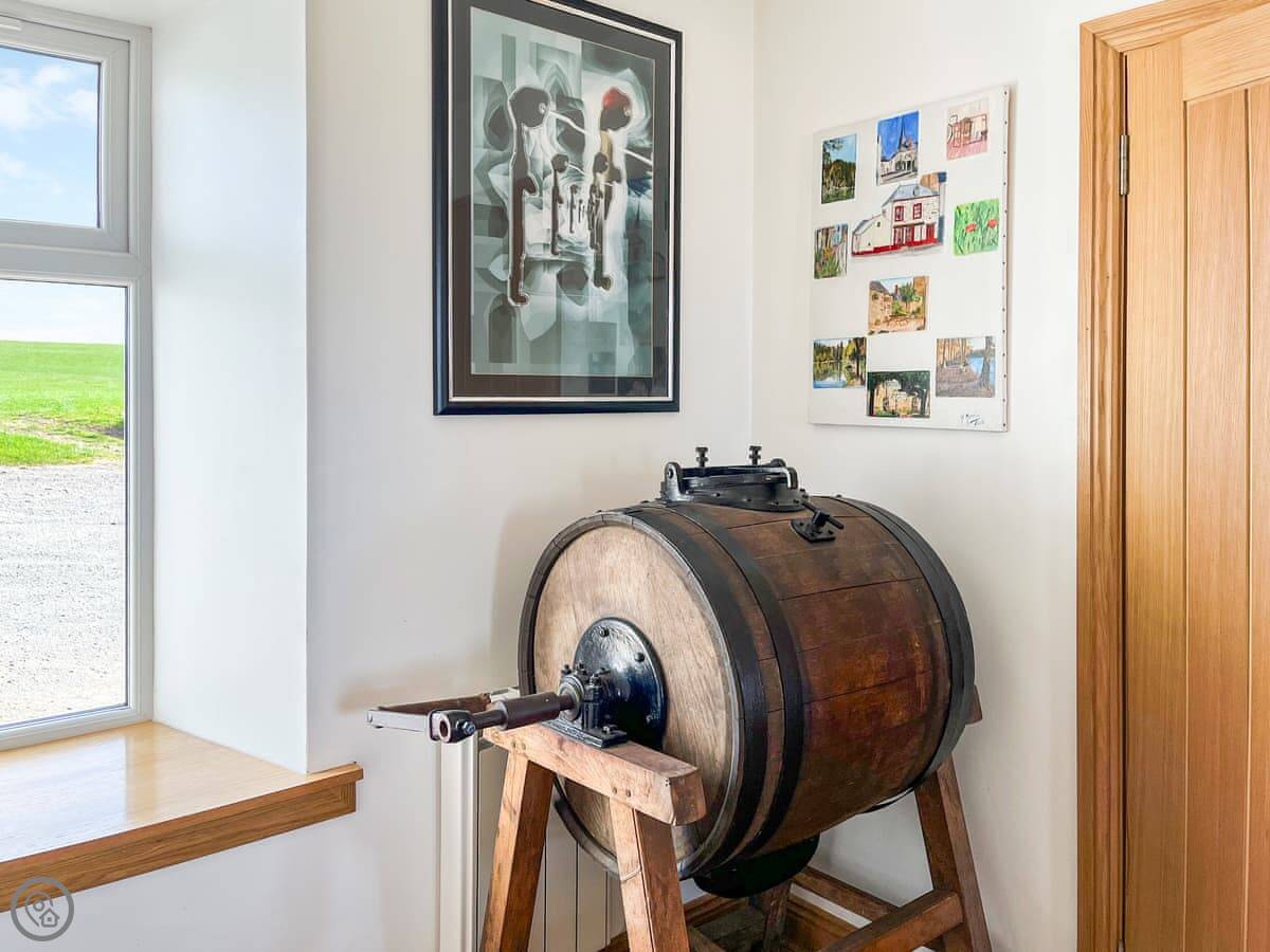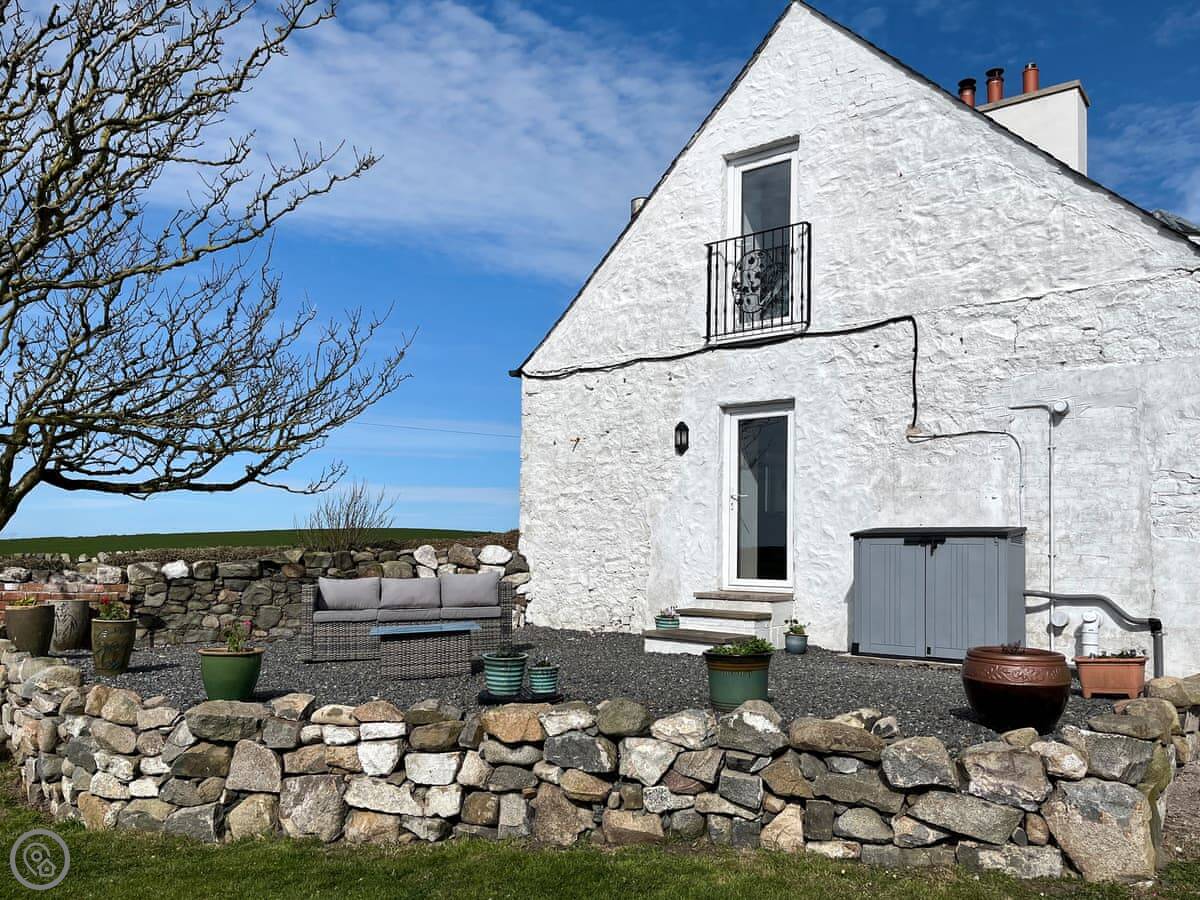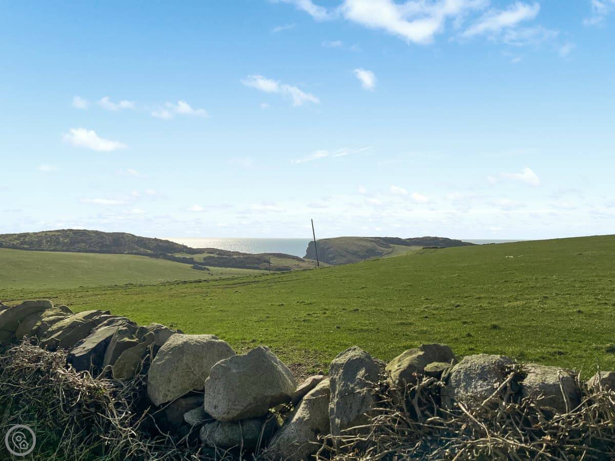 The view is the main thing. It looks south over our fields, then the cliffs and the sea. You can see the Mull of Galloway lighthouse from the window on a clear day. It's about a ten minute drive to get there. The Mull of Galloway has the lighthouse, a café, and the RSPB reserve. Drummore village is closer, maybe five minutes. It's got a shop, a pub, and a chip shop.
