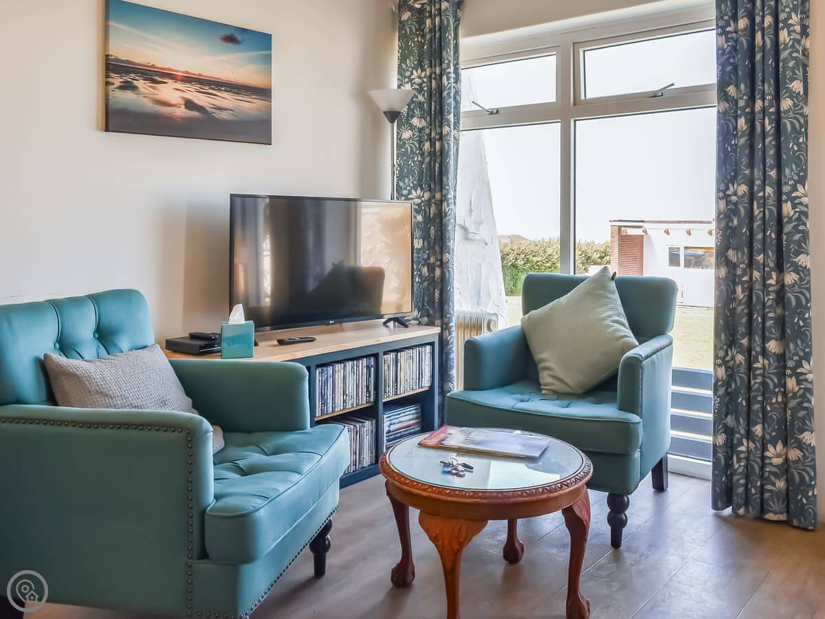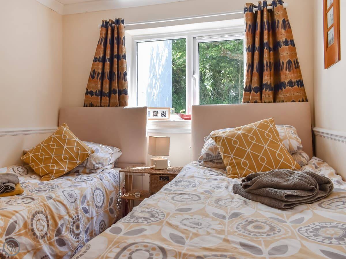It sleeps four. Two bedrooms, one bathroom. It's a 3 Star place. Everything works, it's clean and tidy, but it's not luxurious. The living area is all open plan. The garden at the back is small and private, good for sitting out.