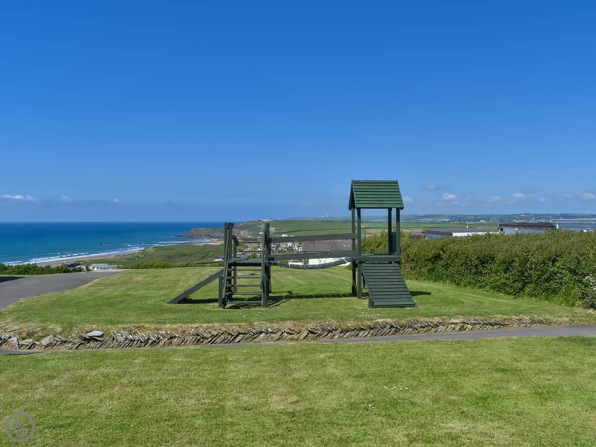 Little Palms is in Widemouth Bay, Cornwall. It's a chalet in a holiday village. You're up on the hill, so you get a good view out over the fields towards the sea. It's about a five minute walk down from the car park to the chalet itself.