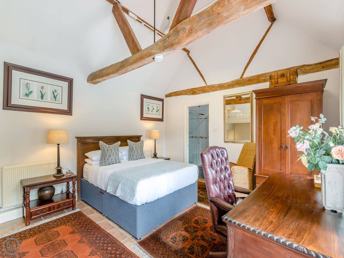 The Cottage is in Sutton Green, Surrey. It's part of a small complex of holiday lets. It sleeps eight, in two bedrooms. That's because both bedrooms have two double beds each. So it's really set up for two families or a bigger group who don't mind sharing rooms.