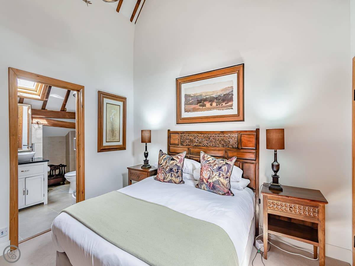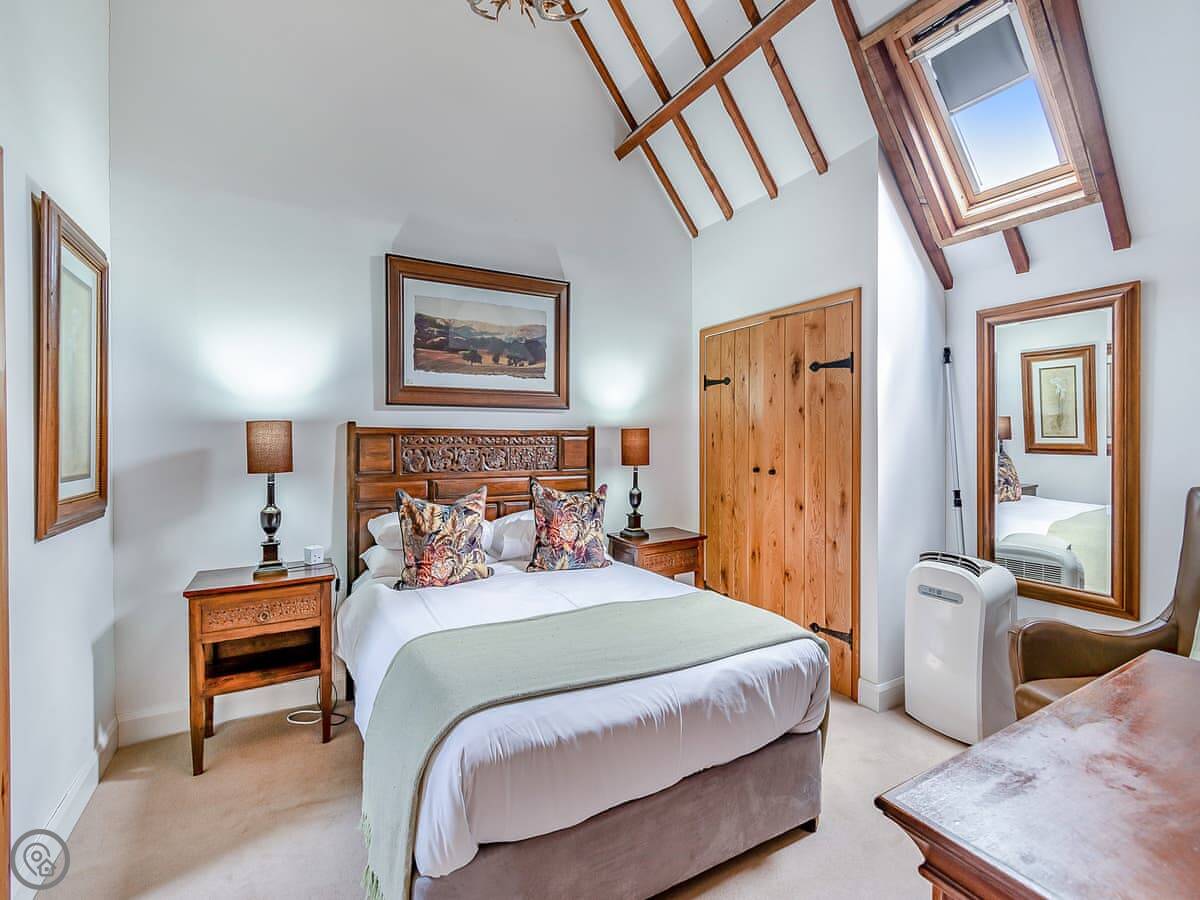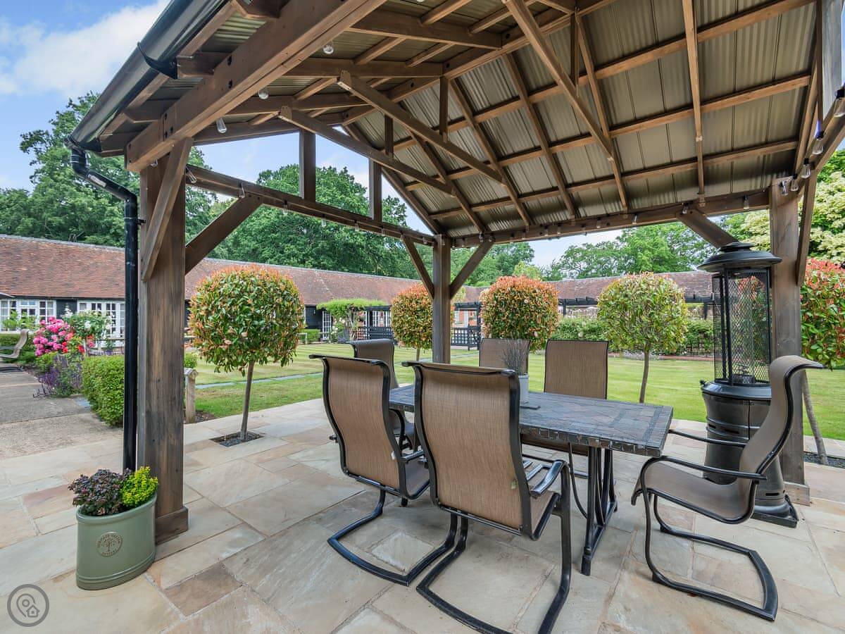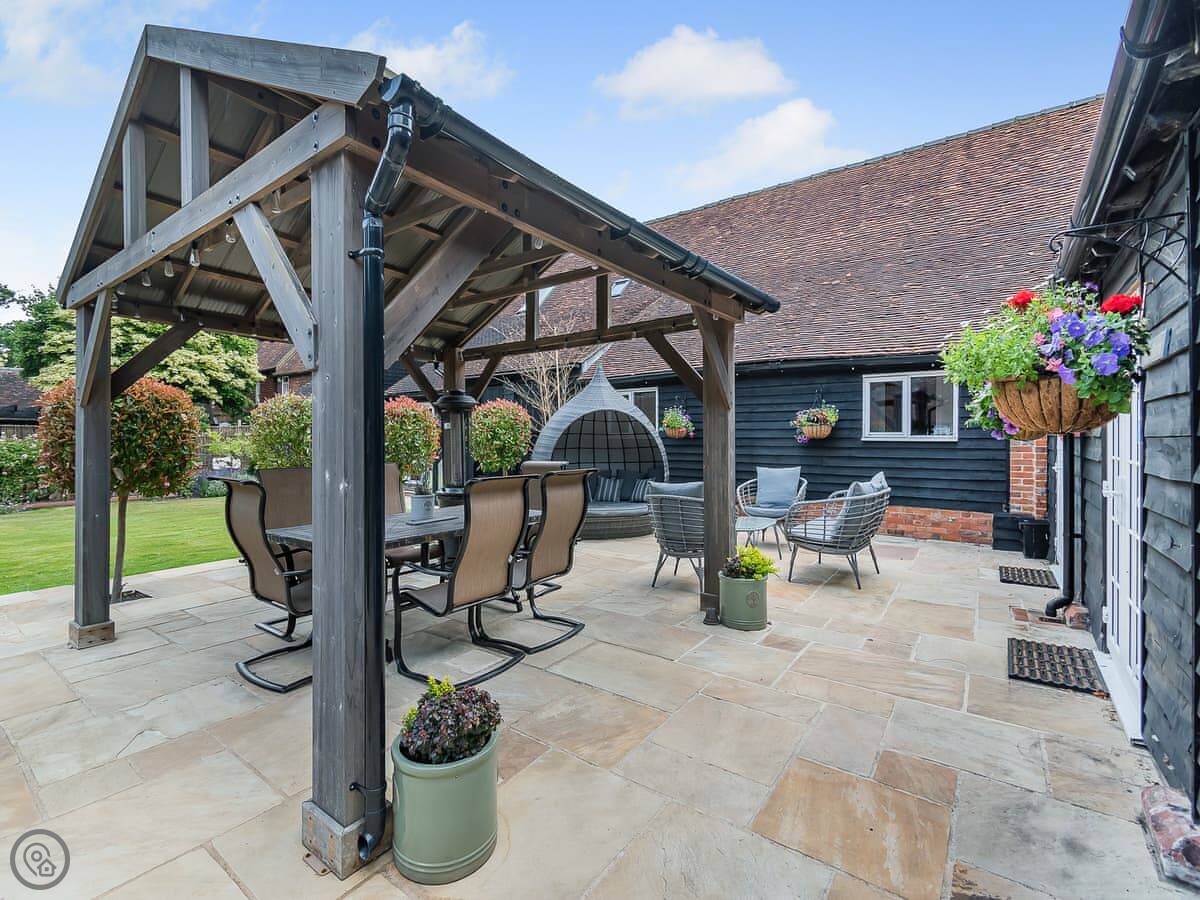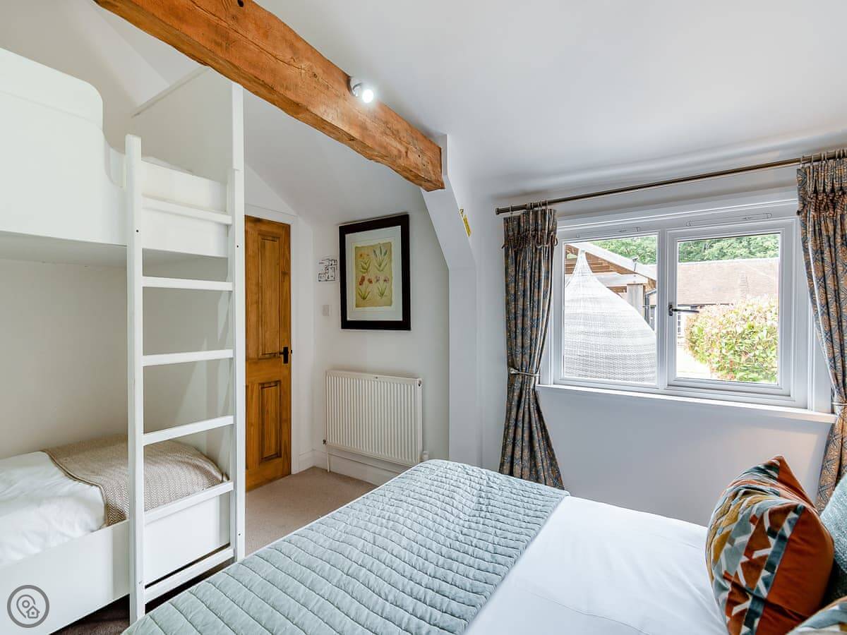The Barn is on the edge of Sutton Green, near Woking. It's a converted barn, done up pretty modern inside. It sleeps eight but it's two bedrooms, so there are bunk beds and it's fairly open plan. It's a 5 Star, which means it's well kitted out and everything is new.