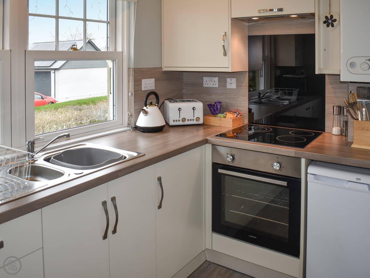 For facilities, you've got wifi, a TV, a washing machine, and bedding and towels are included. There's a small patio area with a barbecue and off-road parking. It's detached and quiet. No pets.