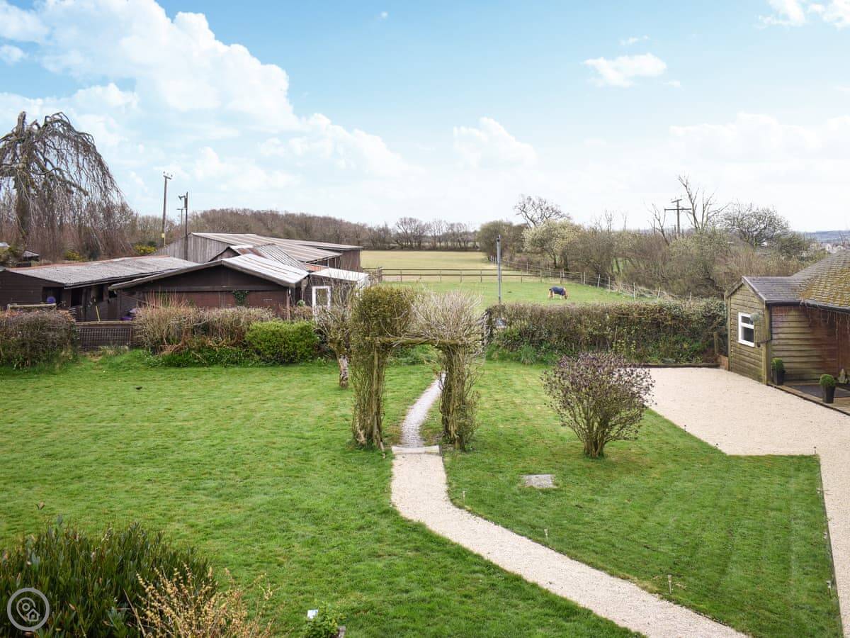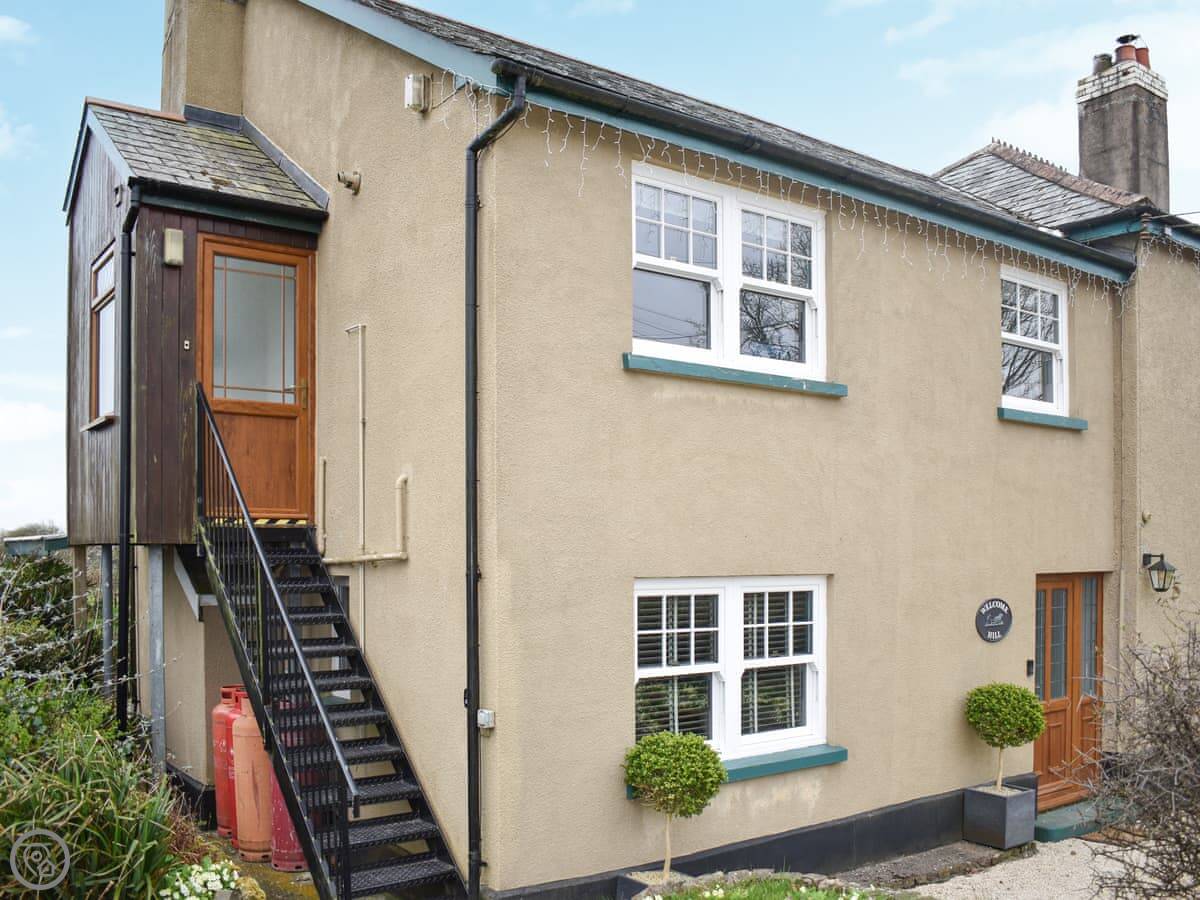 The Loft is in New Inn, which is just outside Shebbear. It's a first-floor flat above an old cart shed. You're up a flight of external stone steps to get in. Private entrance though.