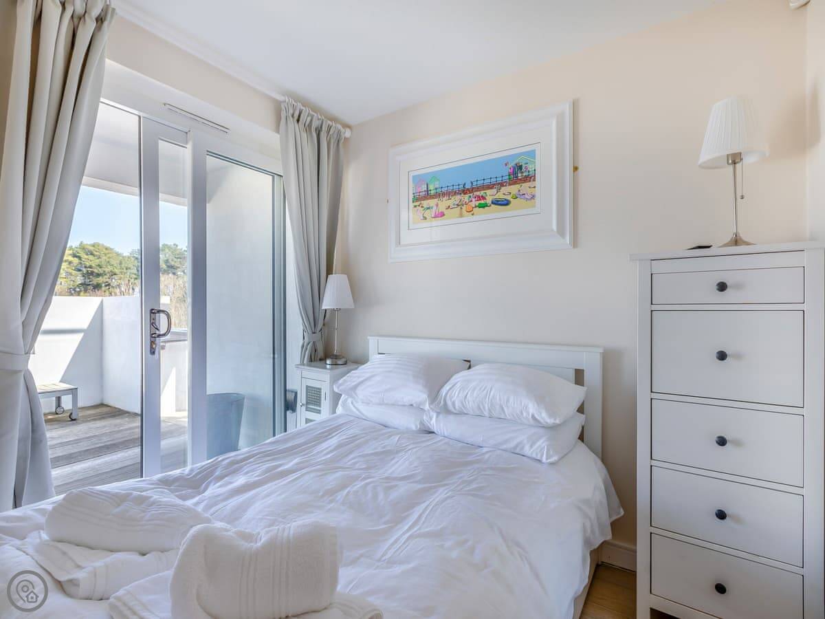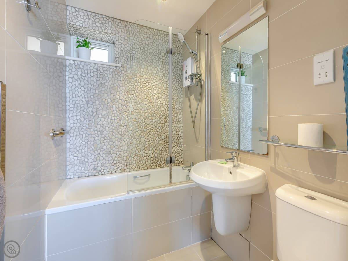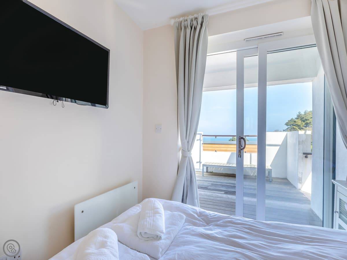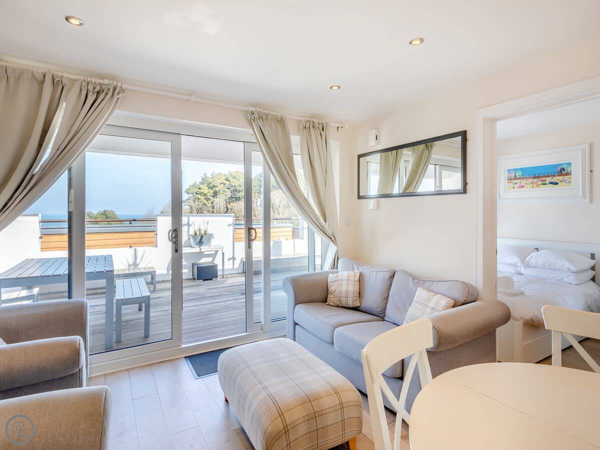 It sleeps four. Two bedrooms, one bathroom. It's got a 3 Star rating. That means it's clean, comfortable, and everything works, but it's not luxurious. The view from the front is the main thing. You look straight out over the sea.