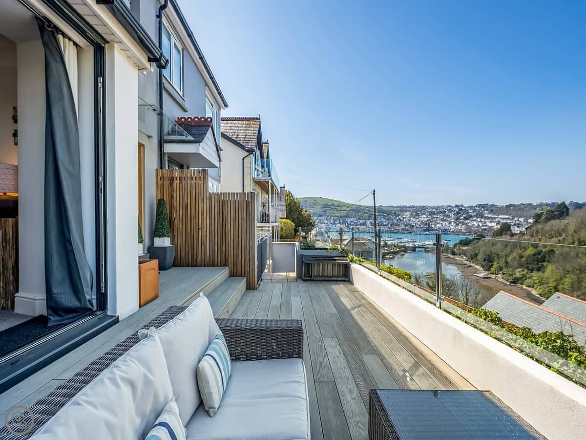 Inglewood Cottage is in Kingswear. It's just up the hill from the ferry over to Dartmouth. You get a view of the river from the front rooms and the little bit of garden out front. It sleeps five across three bedrooms.