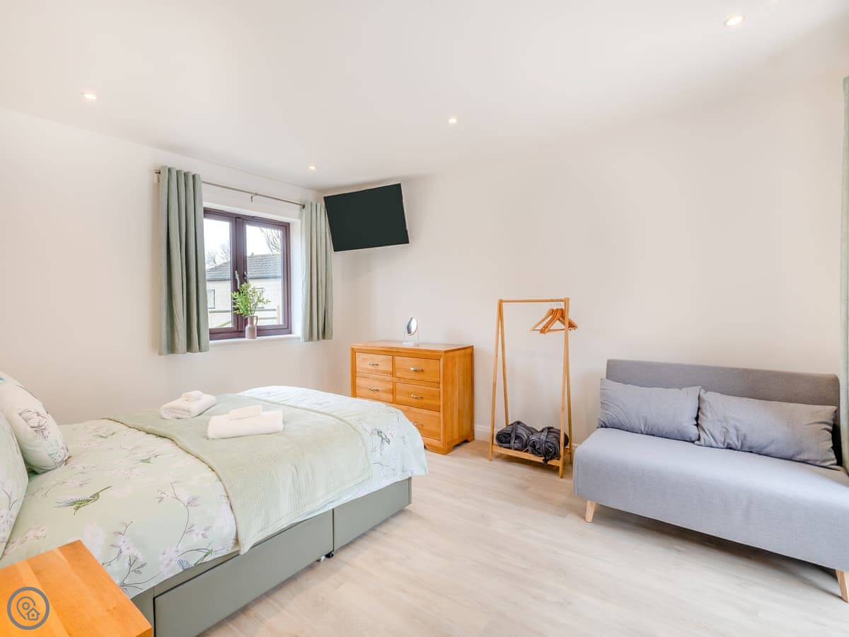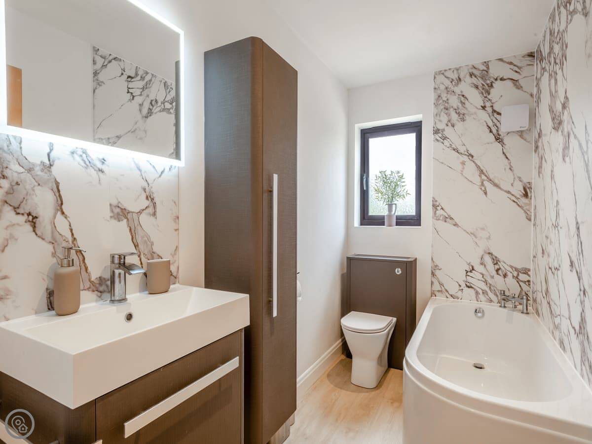 Inside, you've got a washing machine, dishwasher, WiFi, and the bedding and towels are included. There's a cot and a highchair if you need them. No pets allowed, sorry.