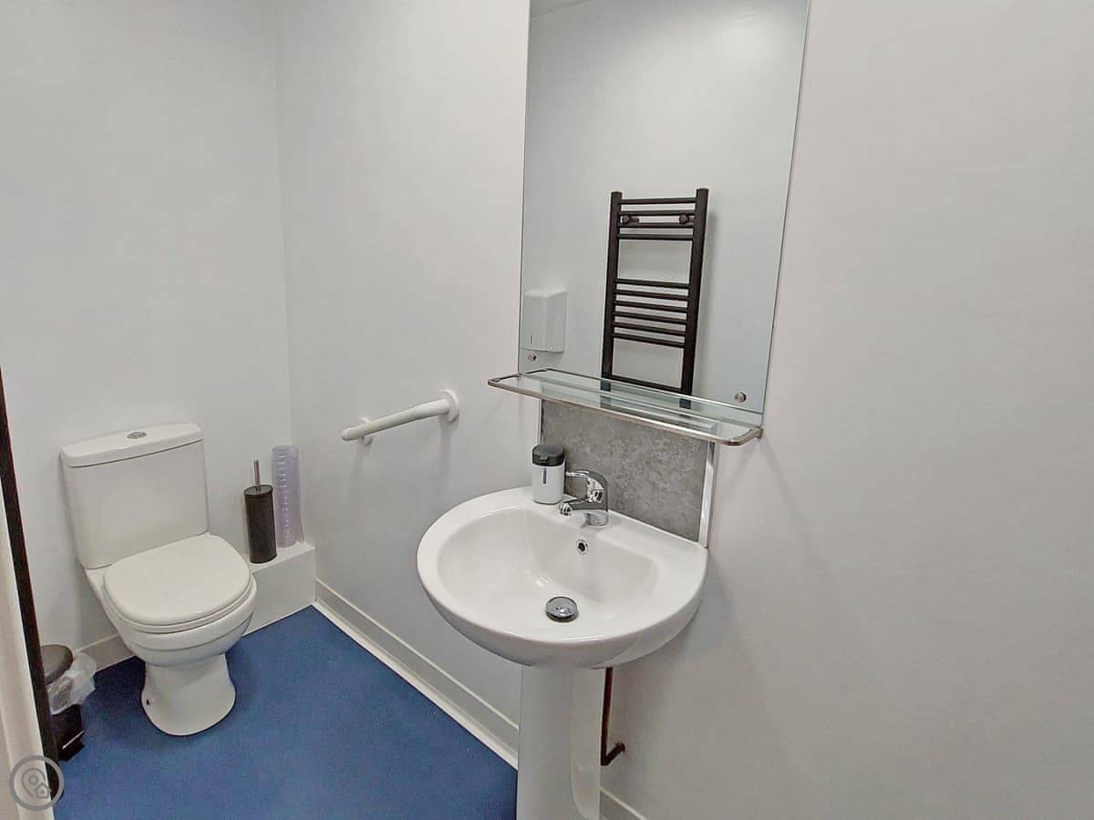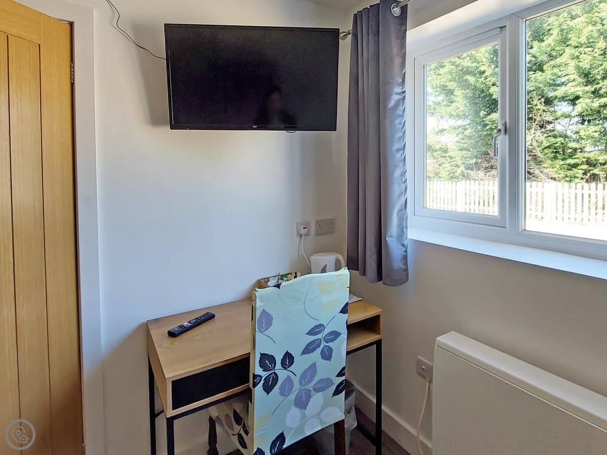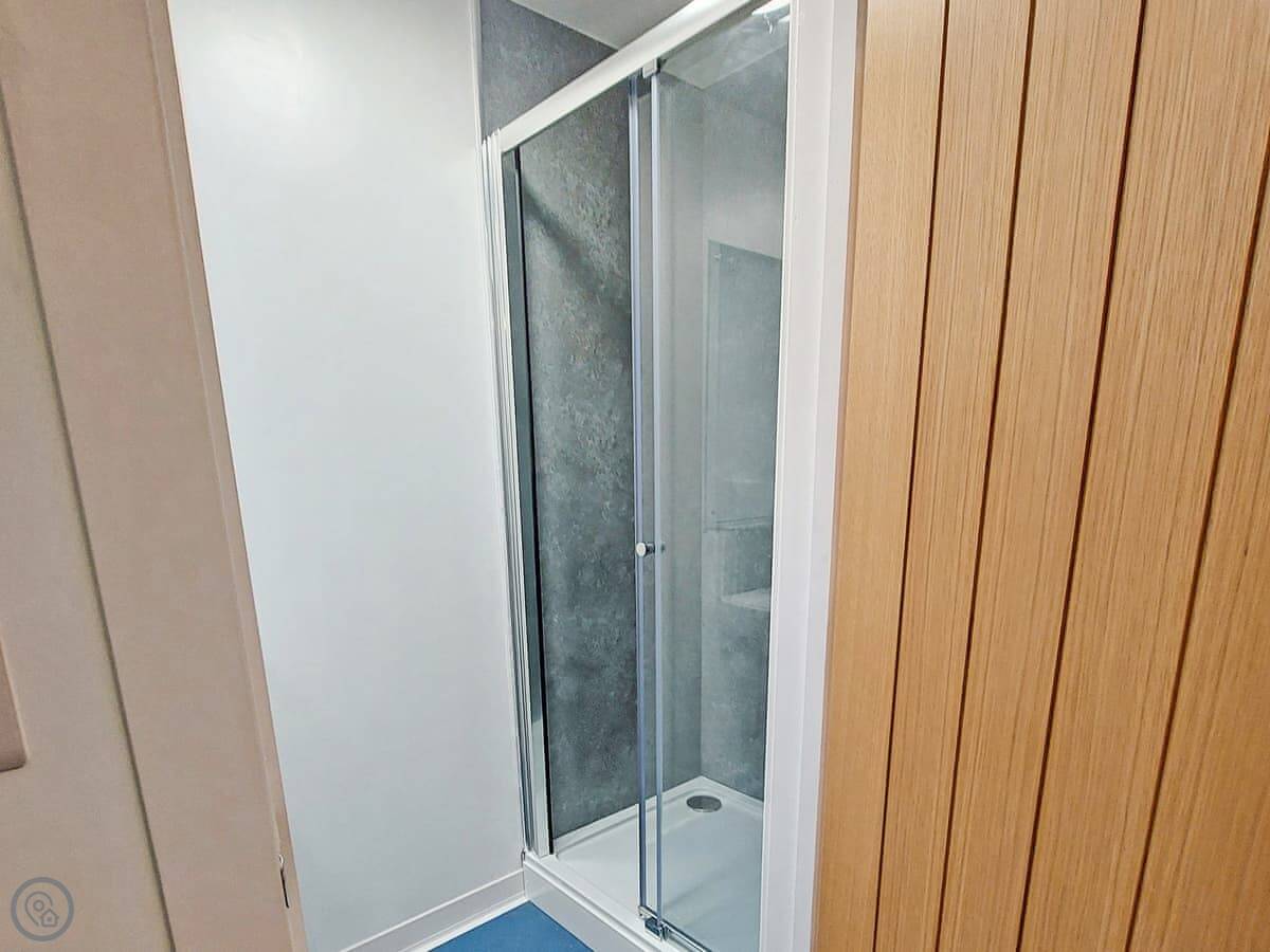 It's got a 3 Star rating. That means it's clean and has what you need, but it's not luxurious. There's a shower, parking right outside, and bedding and towels are included. Everything is on one level, and there are grab rails in places.