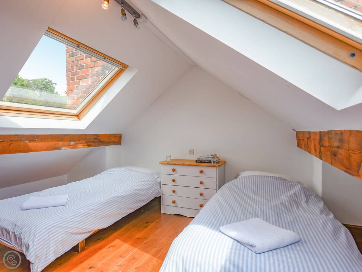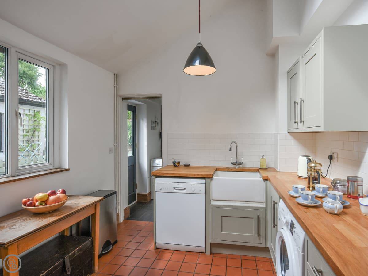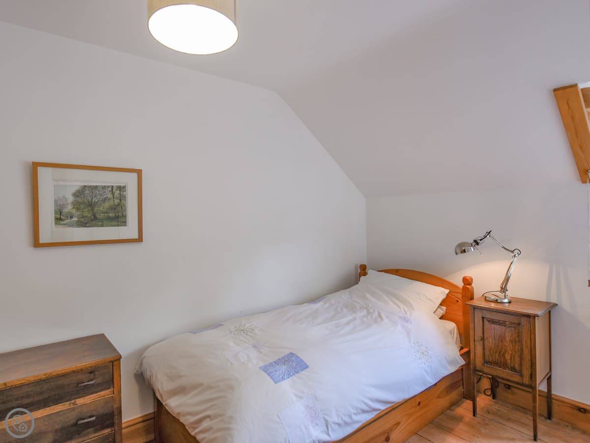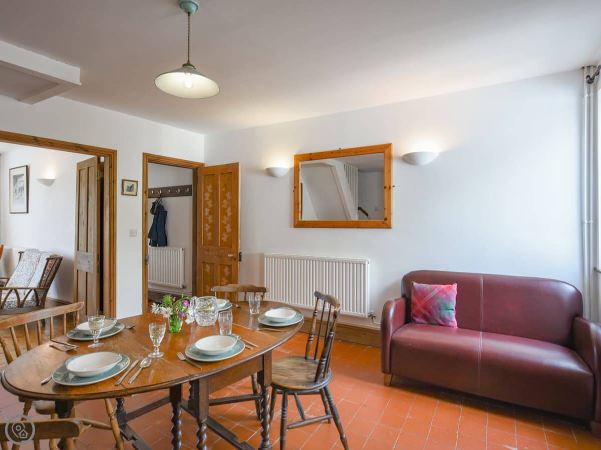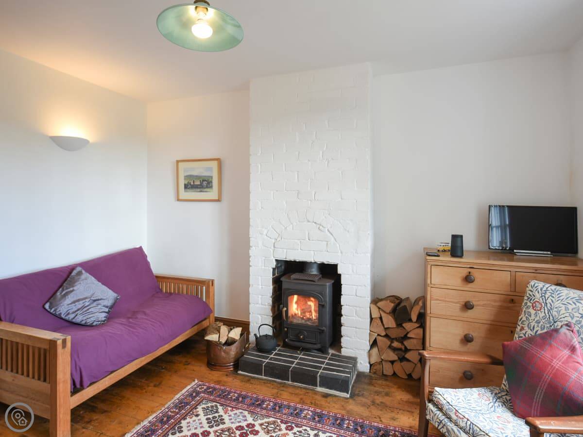 There's a small garden at the front to sit in. It catches the sun in the morning. Inside, there's a woodburner for cooler evenings. Everything else you'd expect is there: wifi, TV, washing machine, dishwasher. Bedding and towels are included.