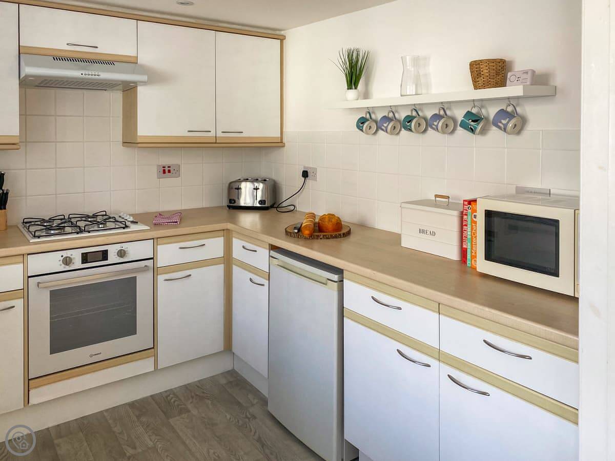 It sleeps four. Two bedrooms, one bathroom and a separate toilet. It's got a 4 Star rating. It's modern and clean. The sunroom at the back is nice, especially when it's sunny. It has doors out to the private garden.