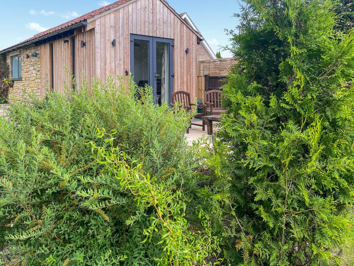 The cottage is on the edge of the village. It's about a ten minute walk to the centre. There are two pubs, a bakery, a shop, and a fish and chip shop there. Your garden is part of a larger lawned garden, so it's very green and private.