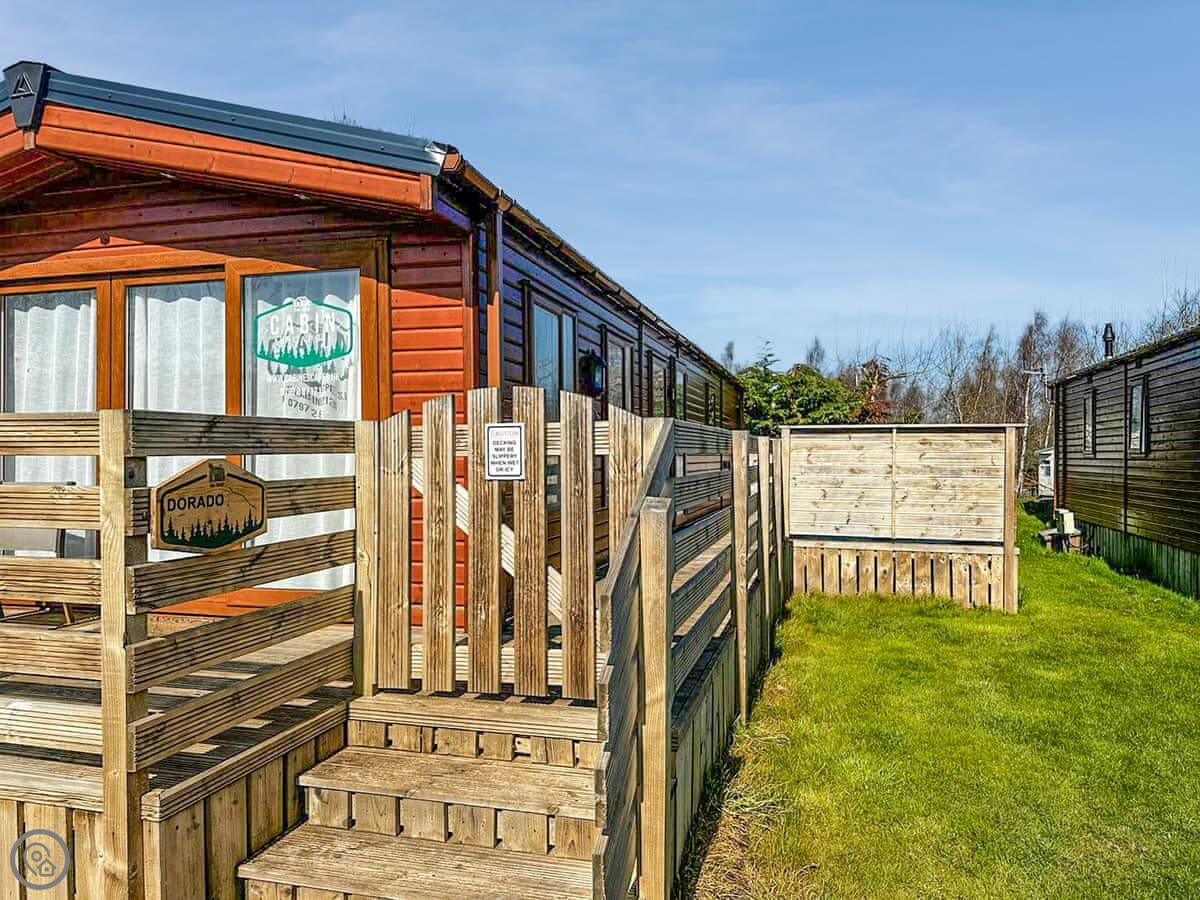 This is Dorado. It's a lodge on Felmoor Park, near Morpeth. It's one of four on site. It’s detached, so it's just you and your own bit of garden.