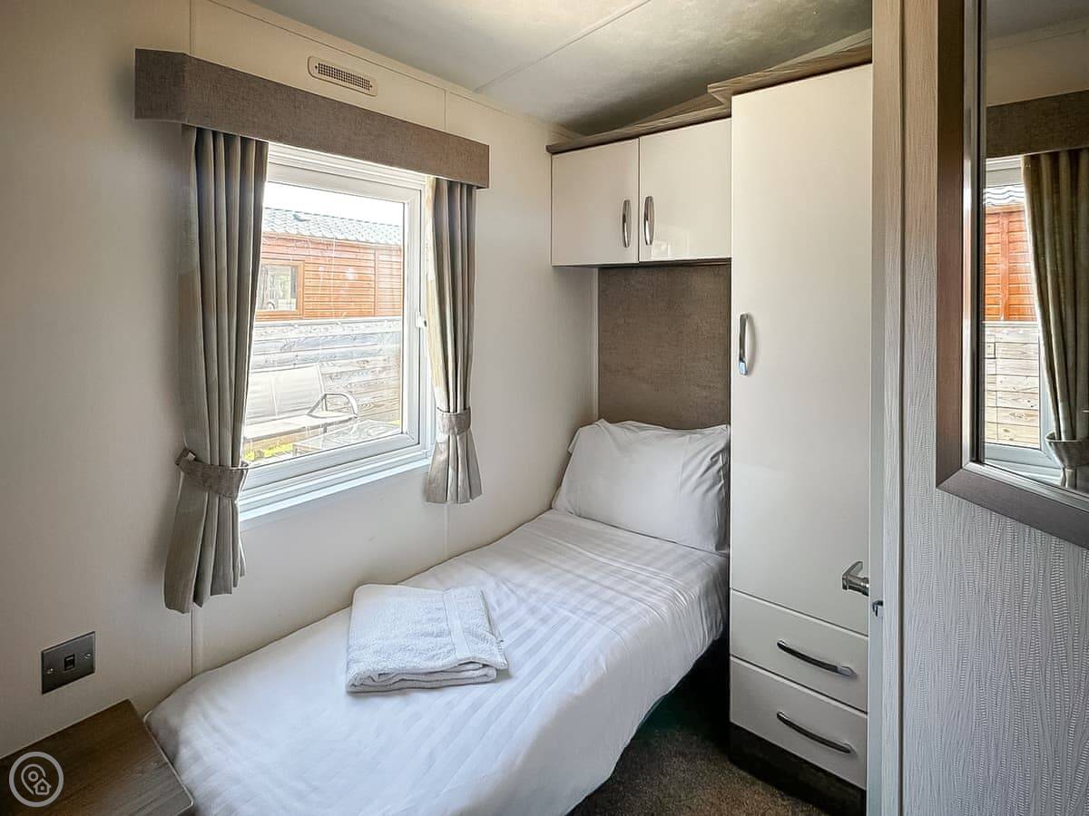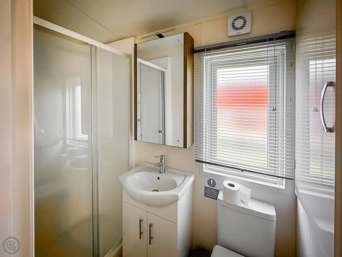 It sleeps four in two bedrooms. One’s a double with its own shower room, the other's a twin room and there's a family bathroom too. It's got a 4 Star rating. Everything's clean and works, it's not overly fancy. It's open plan inside, so the kitchen, living and dining area are all one space.