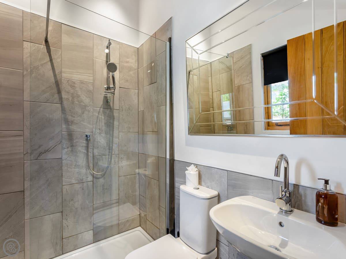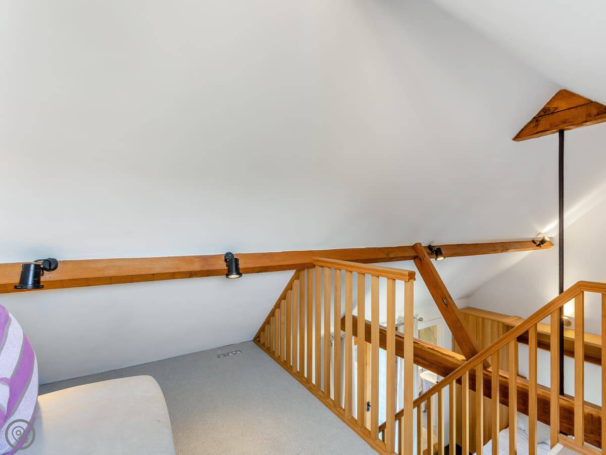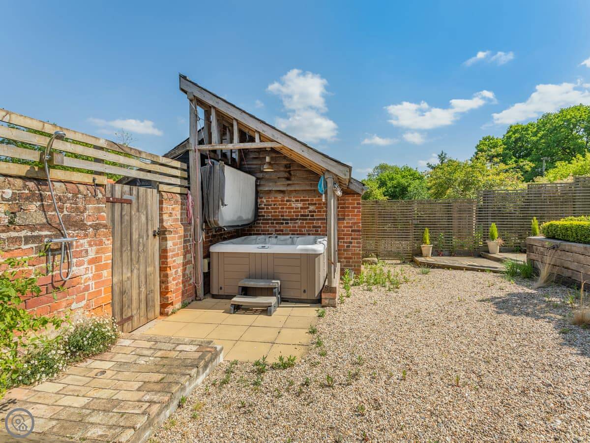 The garden is enclosed and private. It has a hot tub. The stairs to the first floor are fine, but there's a spiral staircase up to the games room in the eaves. It's quite tight.
