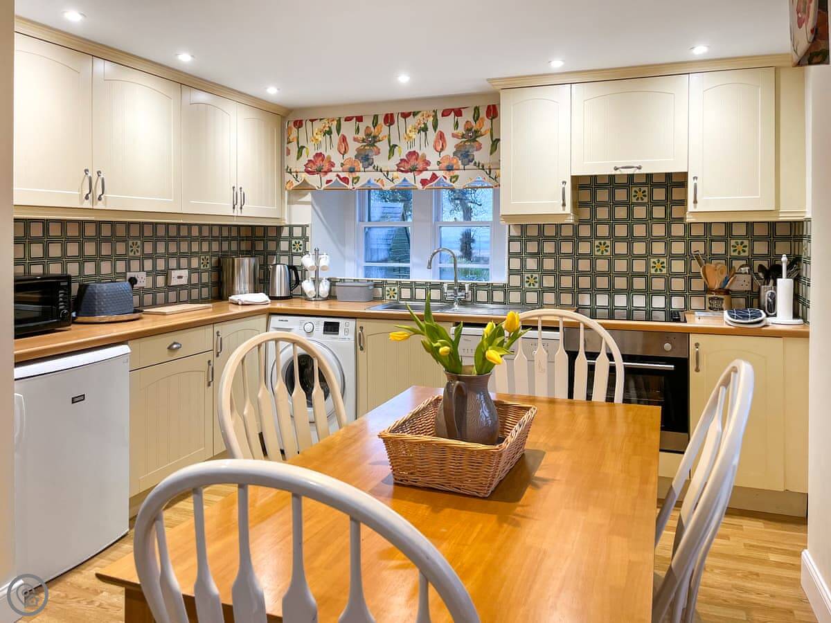 The place is clean and warm. It's got a woodburning stove if you want a fire. There's a dishwasher and a washing machine. The shower is fine, nothing fancy.