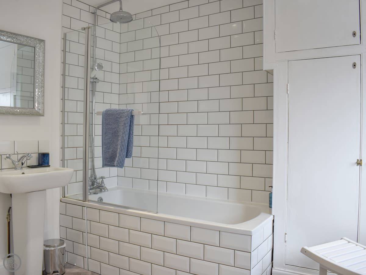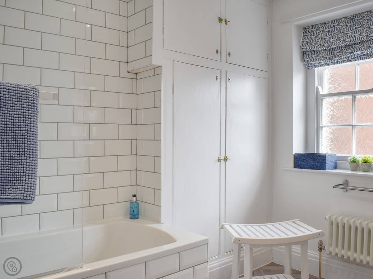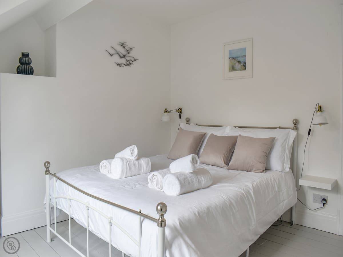 It’s in the middle of town, so you’ve got restaurants, pubs, and the usual seaside stuff right on the doorstep. The living room has an open fire. The kitchen has a dishwasher and a washing machine. There’s a small enclosed yard out the back through the kitchen door.