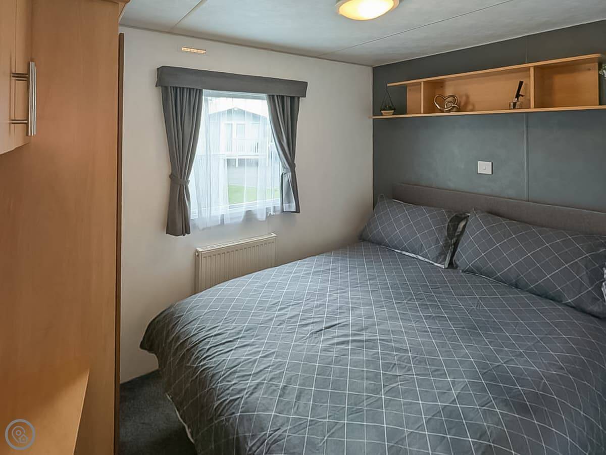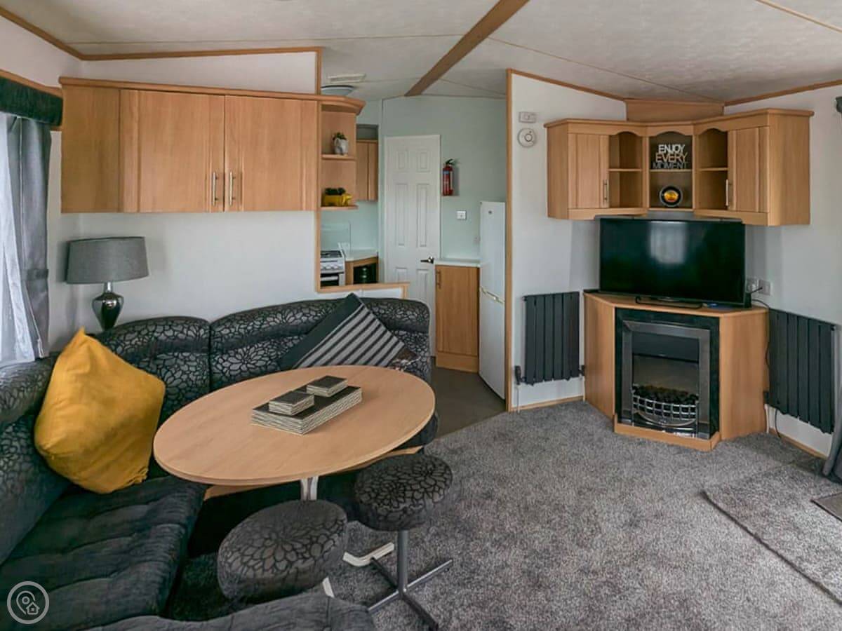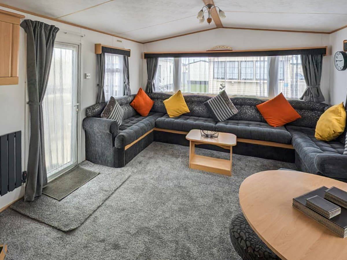 It sleeps eight, though it has three bedrooms: one double and two twins. There's a sofa bed in the lounge for the extra two people. One bathroom with a shower. It's a detached caravan, so no shared walls.