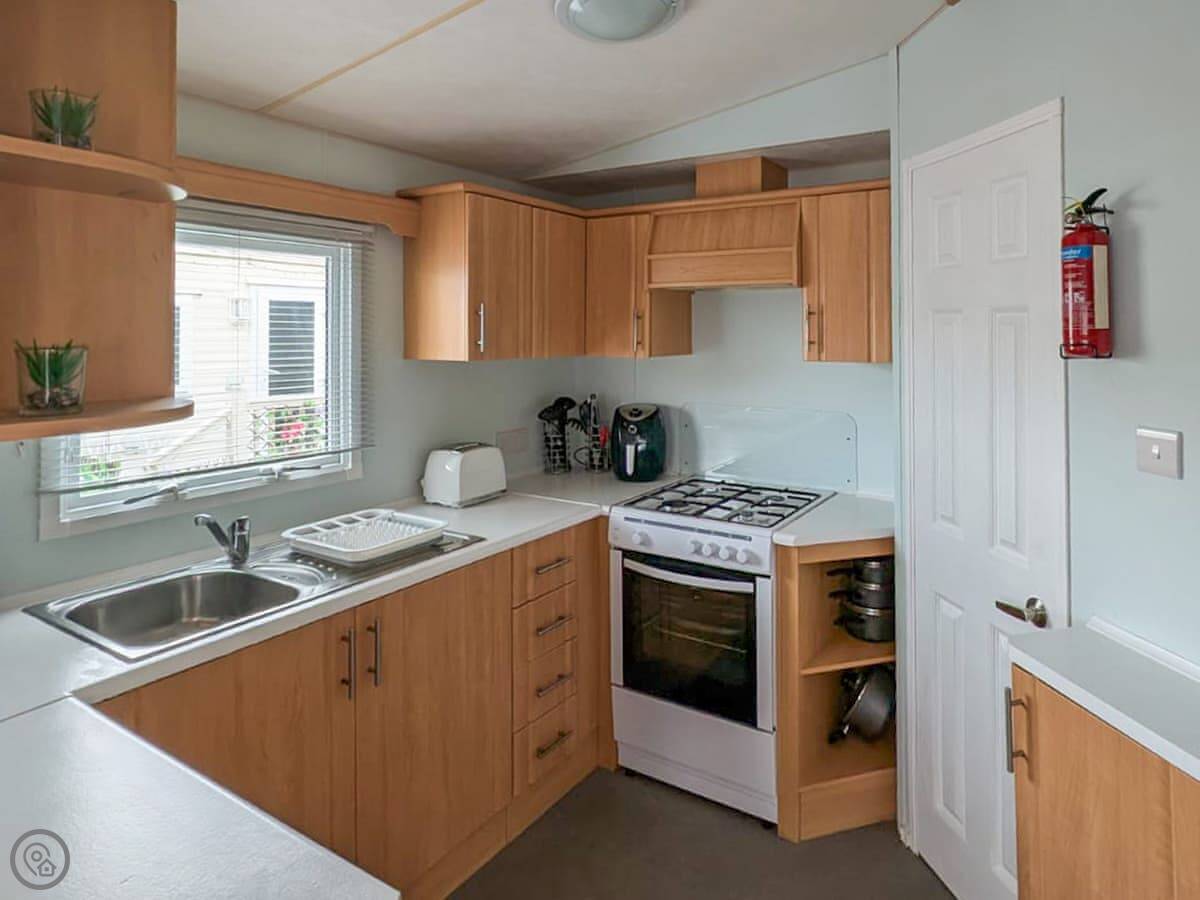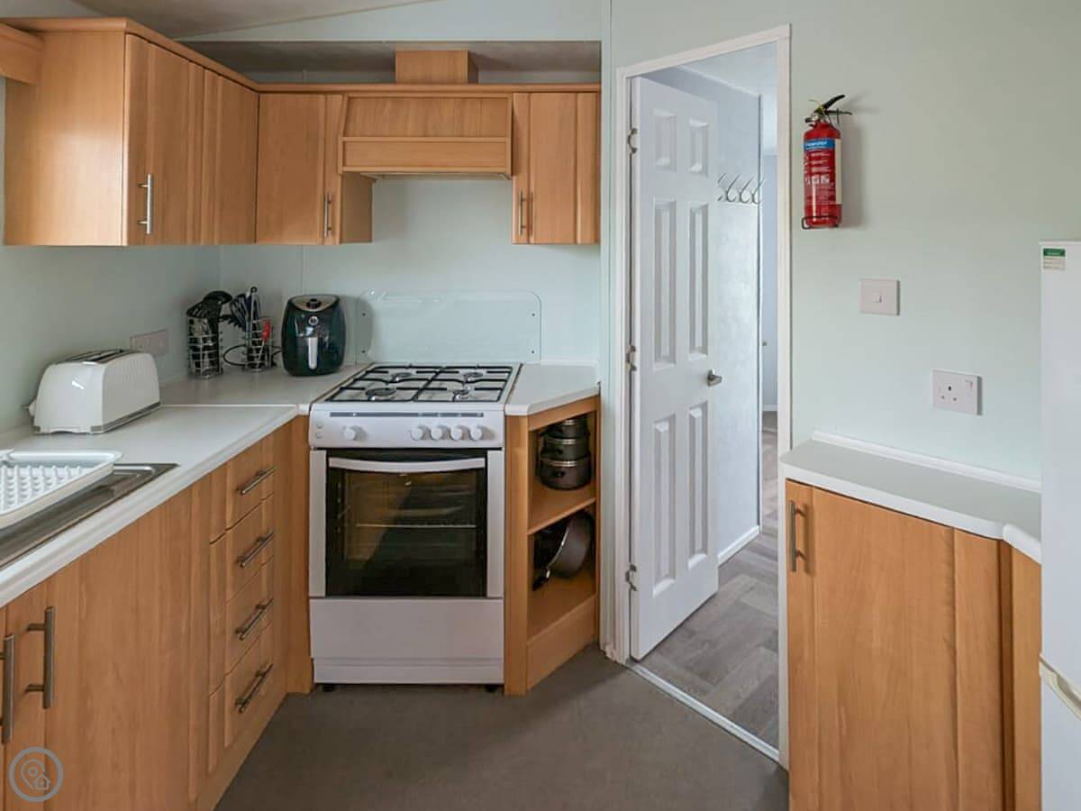 Facilities are what you'd expect. TV, WiFi, parking right outside. All bedding and towels are included. The kitchen has the basics. There's a golf course very nearby on the park.