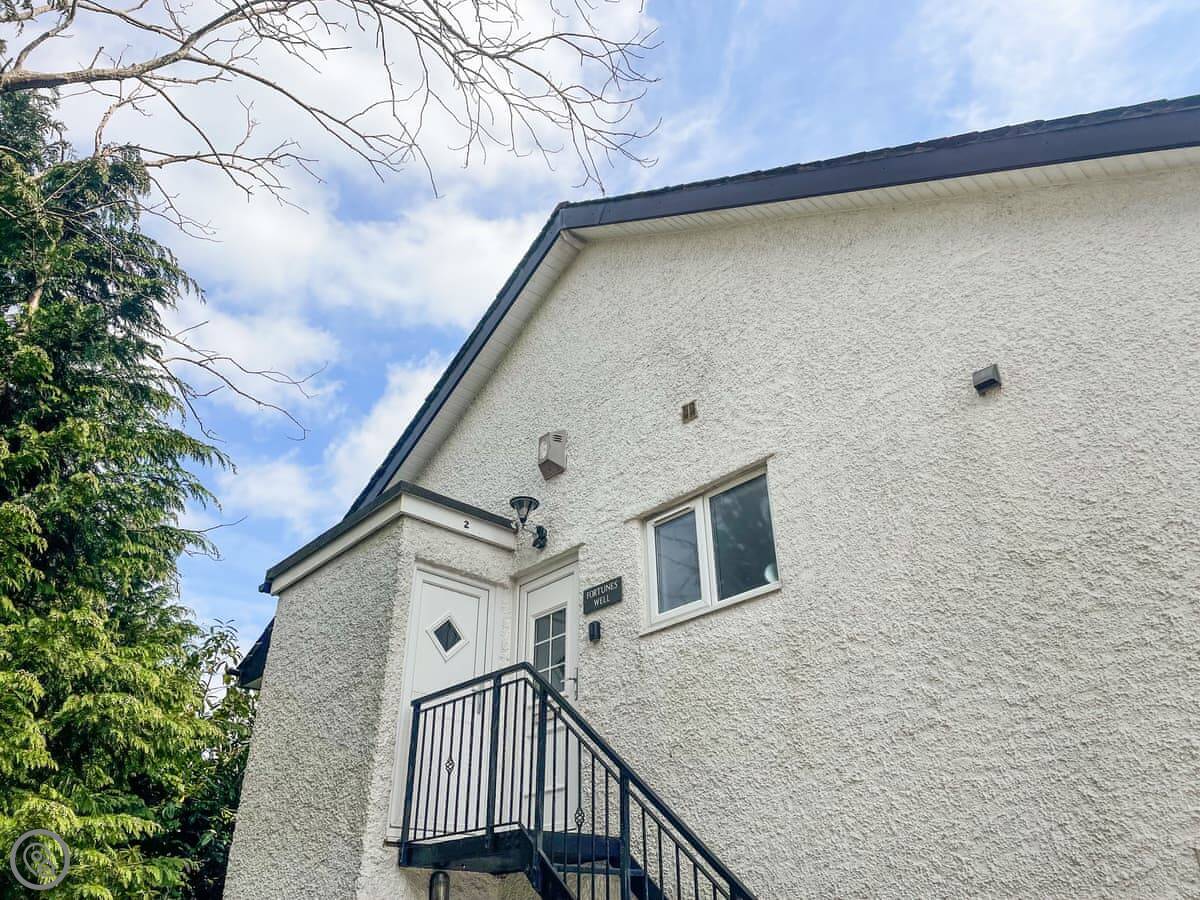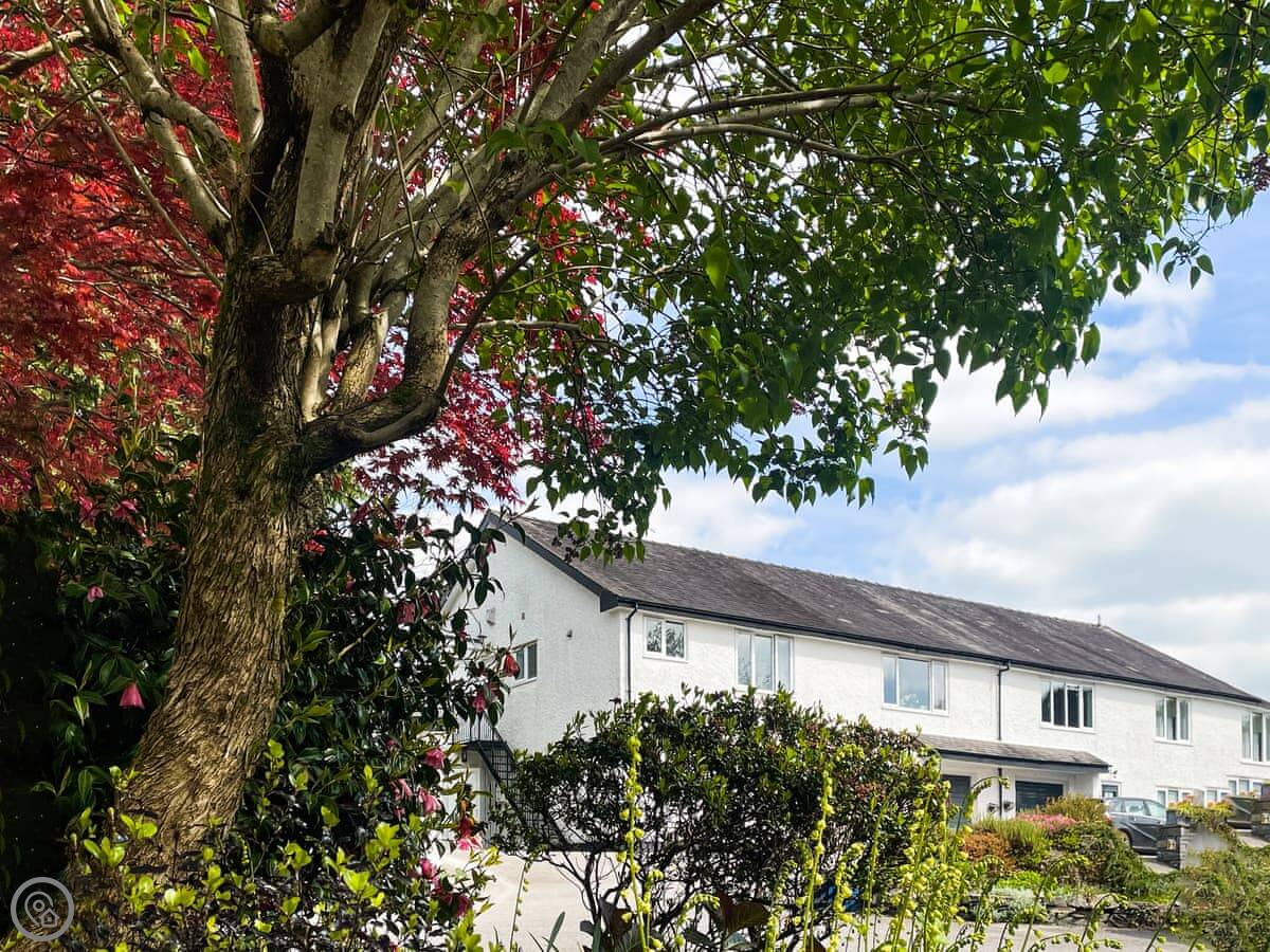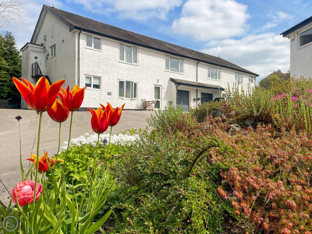 This is Claife. It's a first floor apartment in a small block in Bowness. You get a dedicated parking space, which is a big plus here. The front is nothing special, but inside it's clean and comfortable. It's got a 4 Star rating.