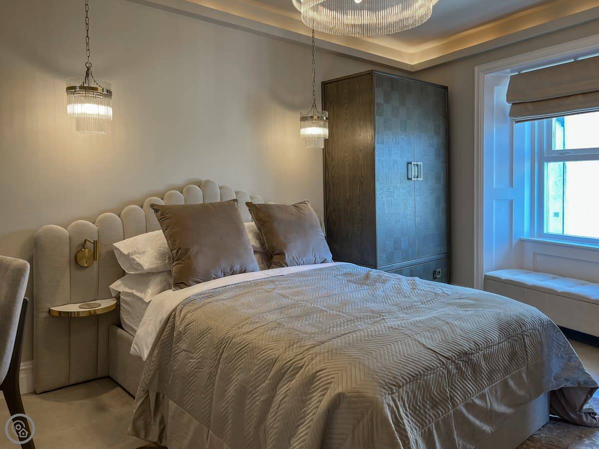 It's been completely done up recently. It sleeps two. One bedroom, one shower room. It's got a 4 Star rating. The bed is a king size. There's a small kitchen area with the basics, and a table by the window. The view is of the street.