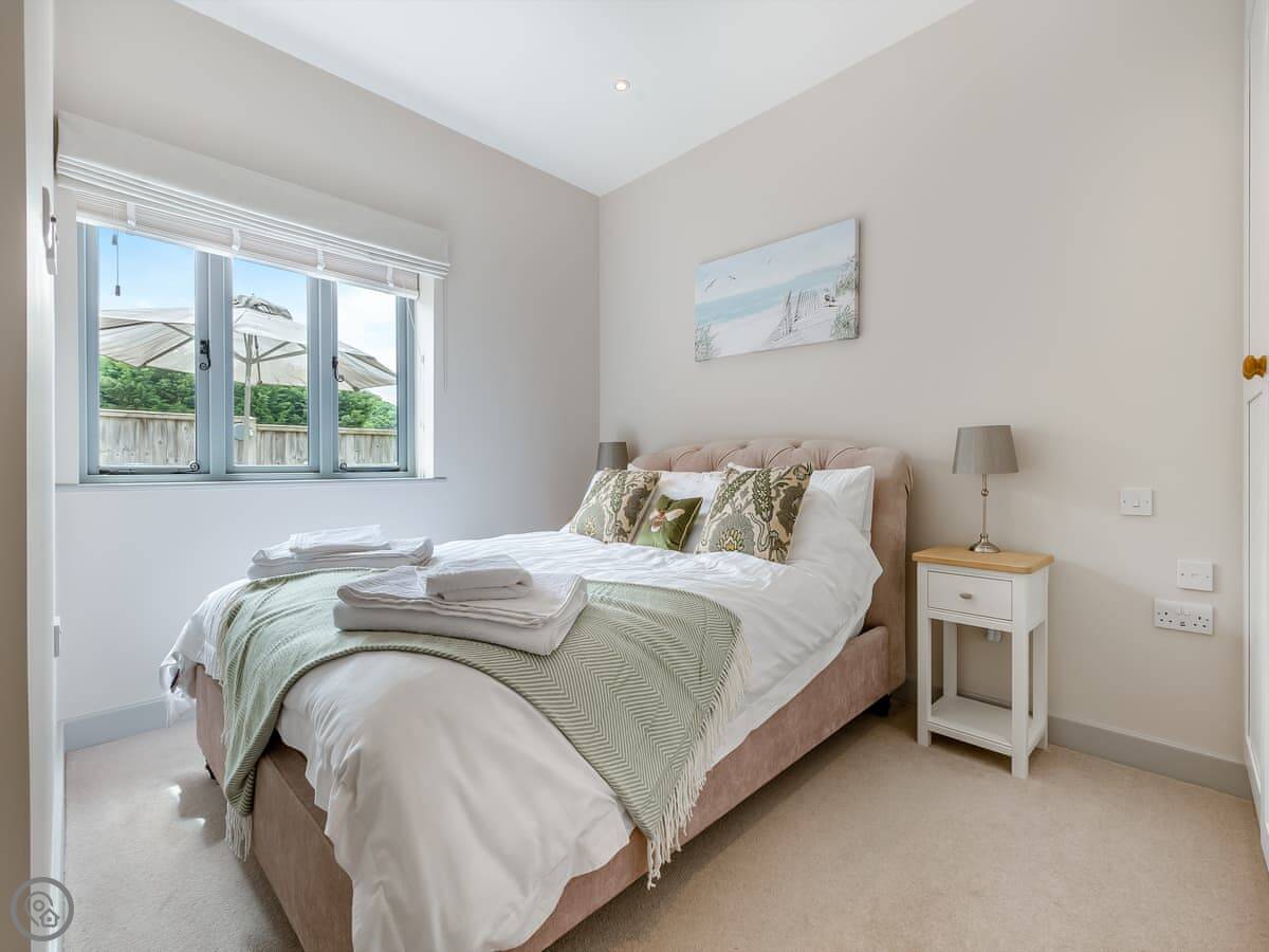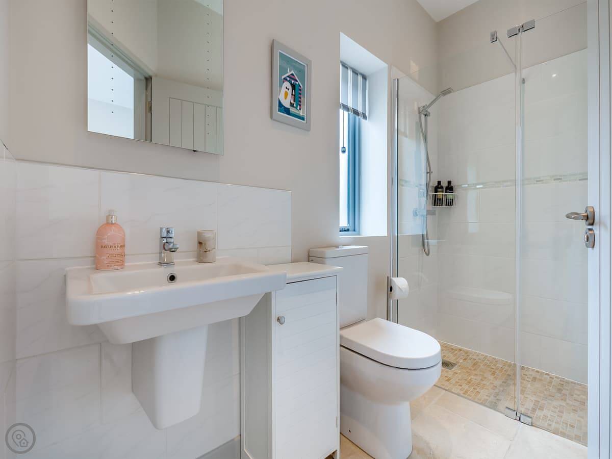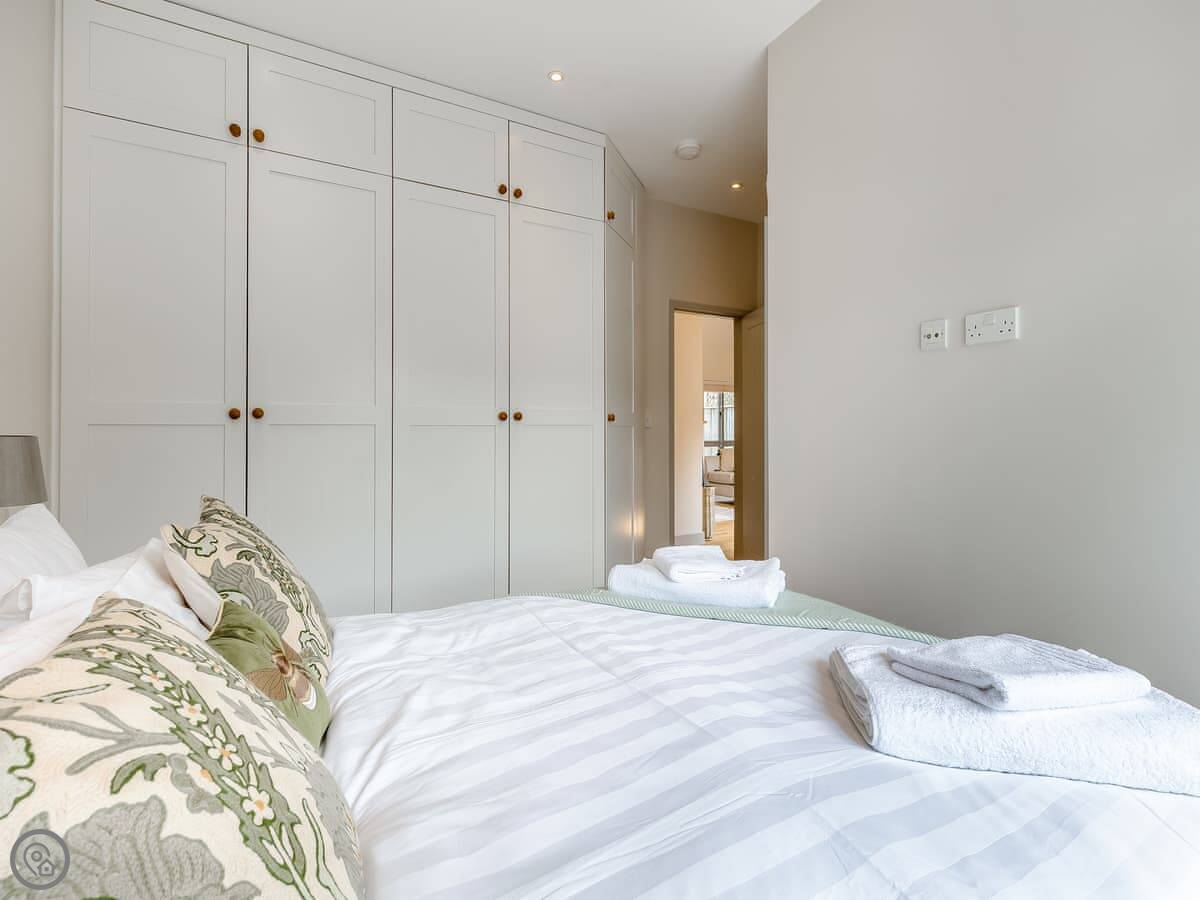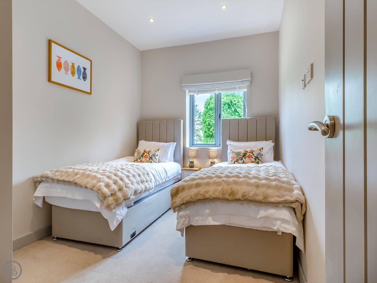 It sleeps four. Two bedrooms, two bathrooms. One's an ensuite with a shower, the other has a bath and a separate shower. The second bedroom has two single beds that can be clipped together to make a double if you prefer.