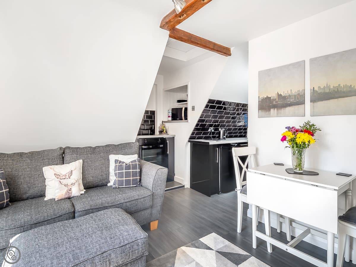 Treetops is a first-floor apartment on the High Street in Suffolk. It sleeps two, one bedroom, one bathroom. It's got a 4 Star rating, which feels right. It's comfortable.
