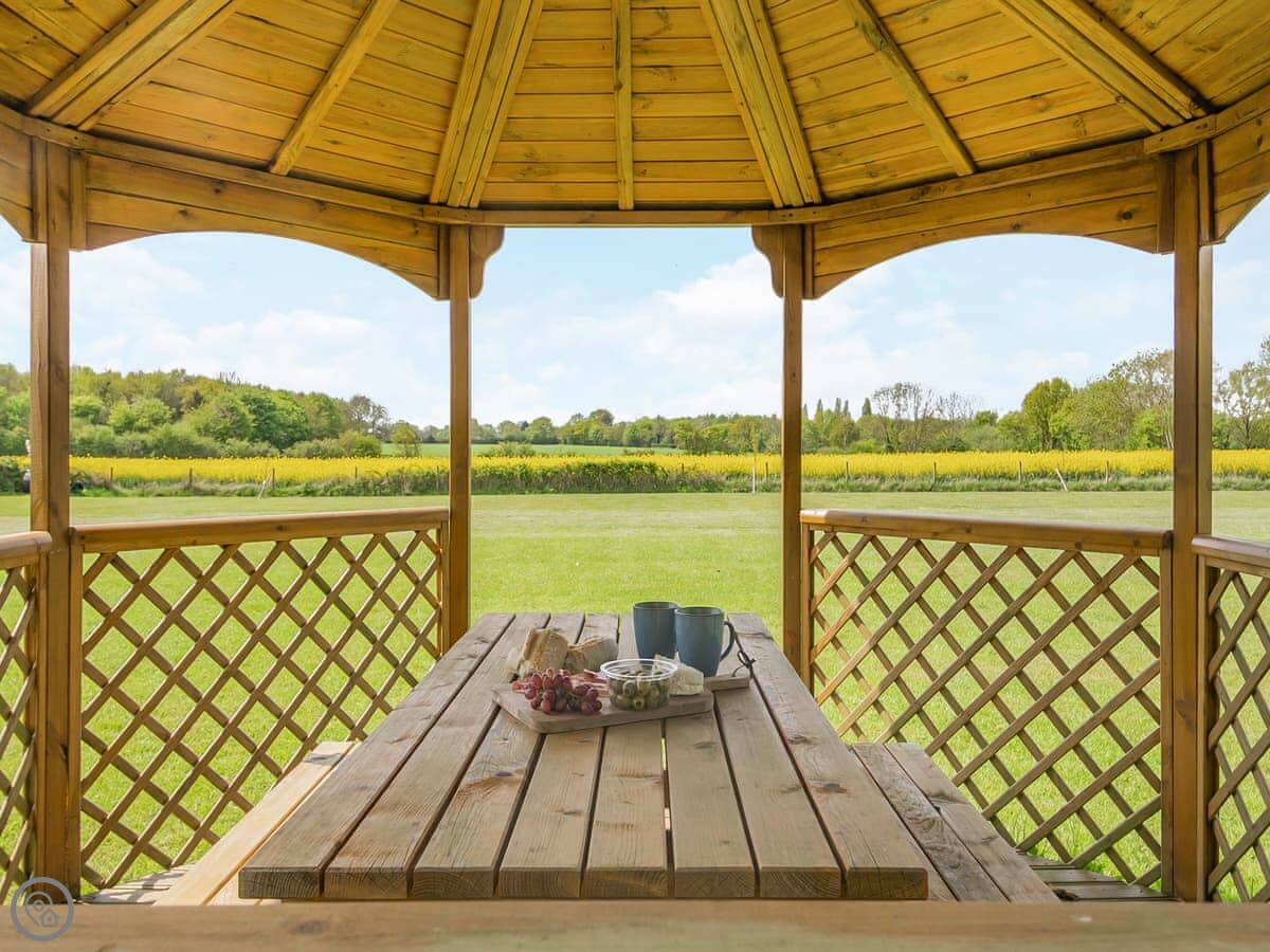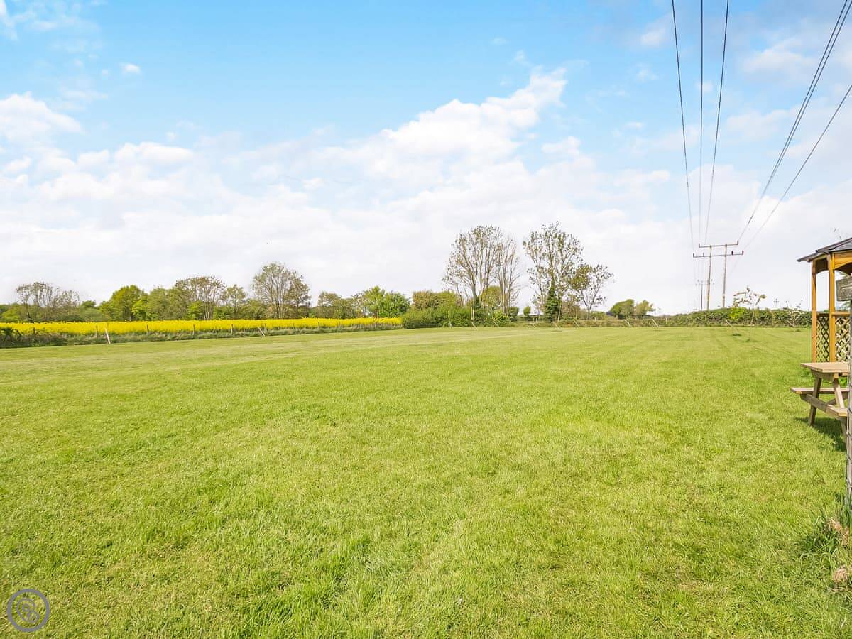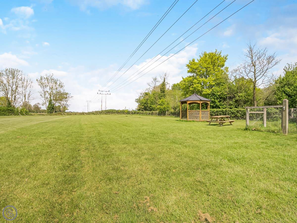 The grounds are shared with some holiday barns, but they're big, nearly three acres. There's a fully enclosed dog field, about an acre, which is handy if you've brought your pet. They can run about safely. There are covered BBQ areas too, for if it rains.