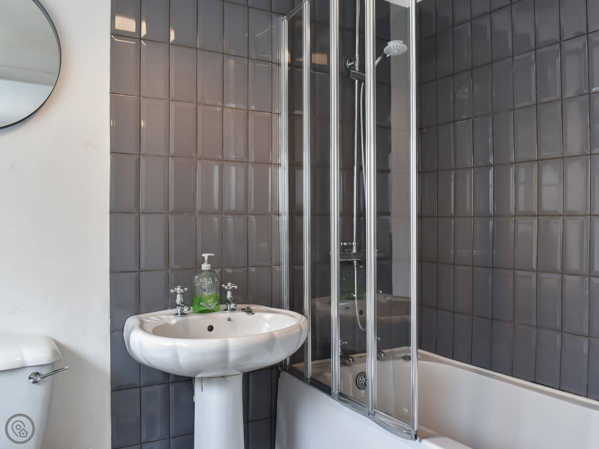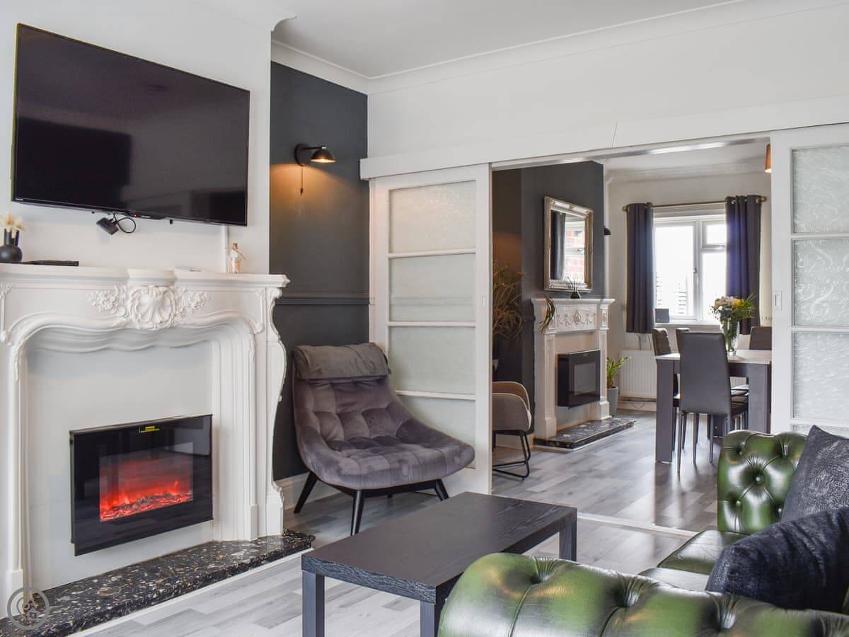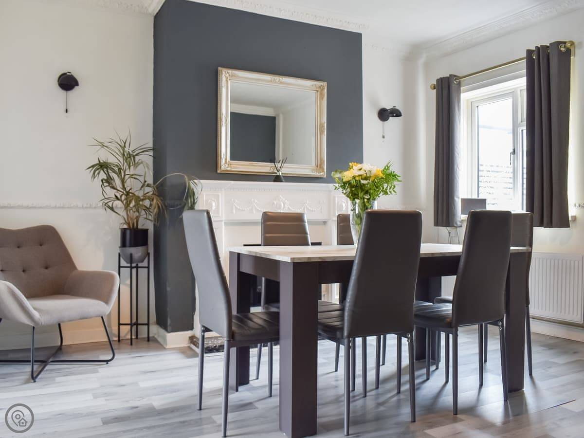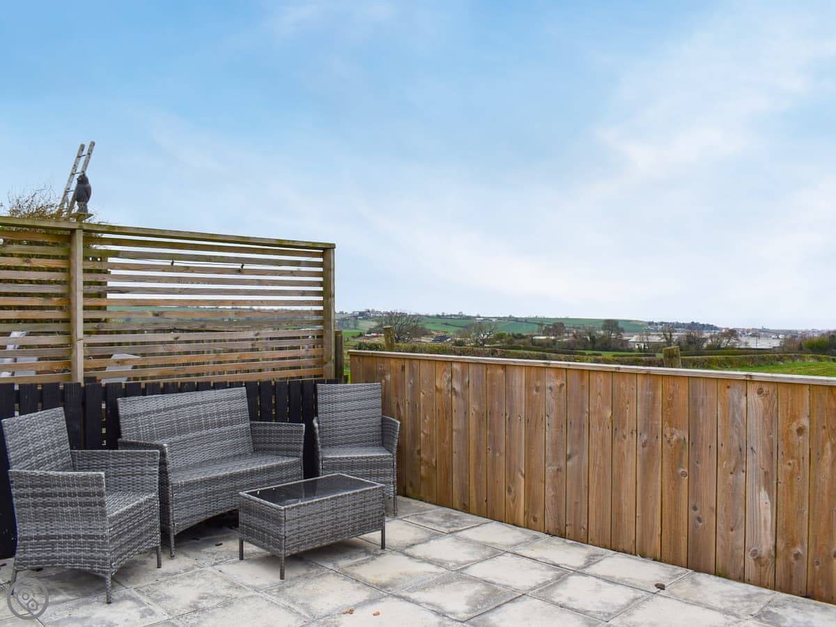 The living room is at the front. There's a dining room next to it with more seating. The kitchen is at the back, a galley style. The door leads out across a small footpath to your private garden. It's enclosed, which is handy with dogs. You can see the sea from there, on a clear day.