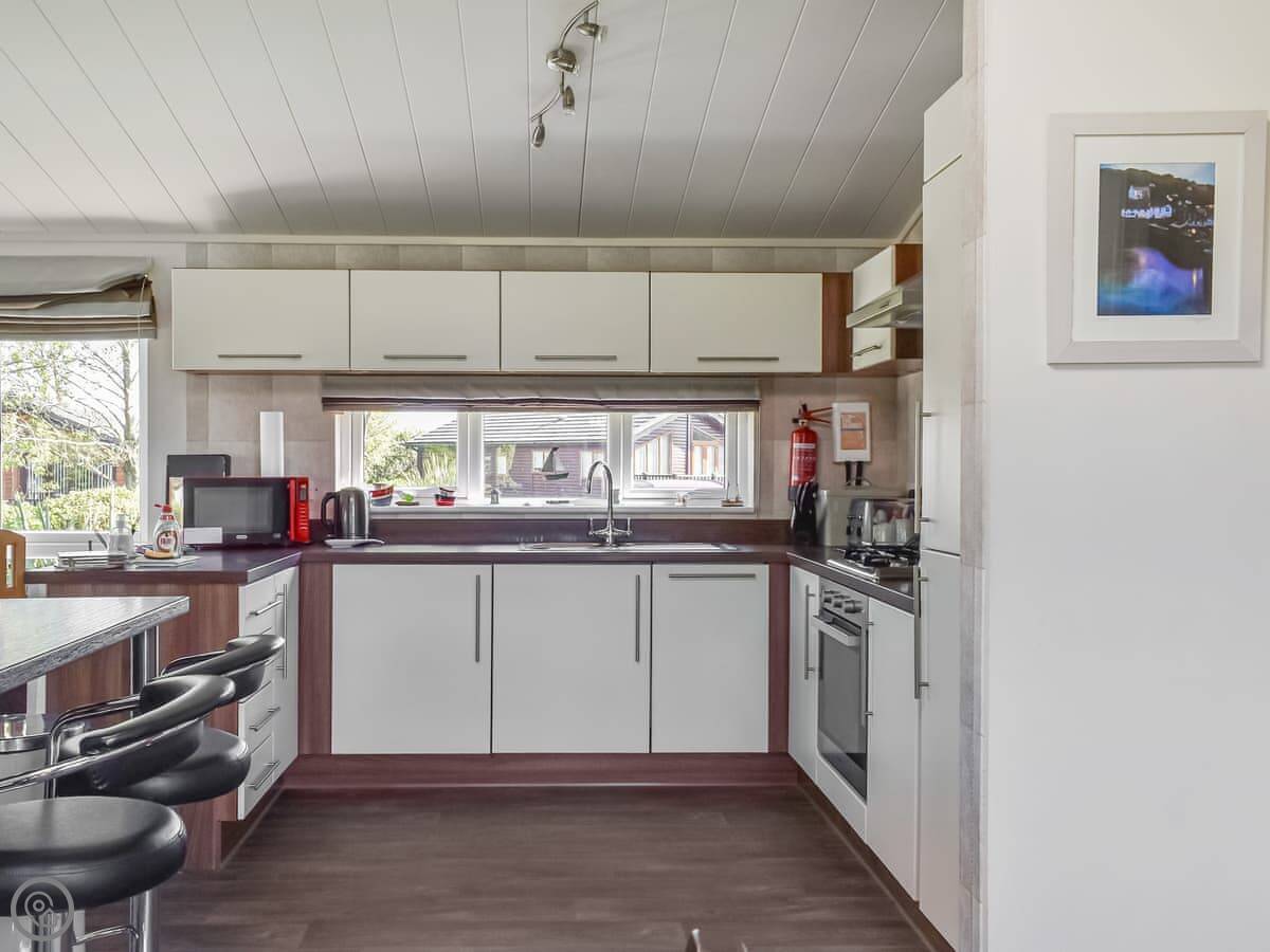 The lodge has parking, WiFi, a washing machine, and a dishwasher. Bedding and towels are included. A travel cot is available if you need it. You can bring up to two dogs.