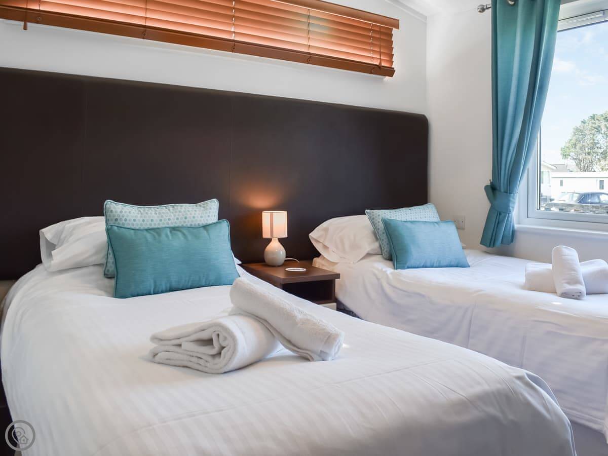 It sleeps four in two bedrooms. There's a double with its own ensuite shower, and a twin room. The main bathroom has a bath with a shower over it. It's got a 4 Star rating, so it's well-equipped and comfortable.