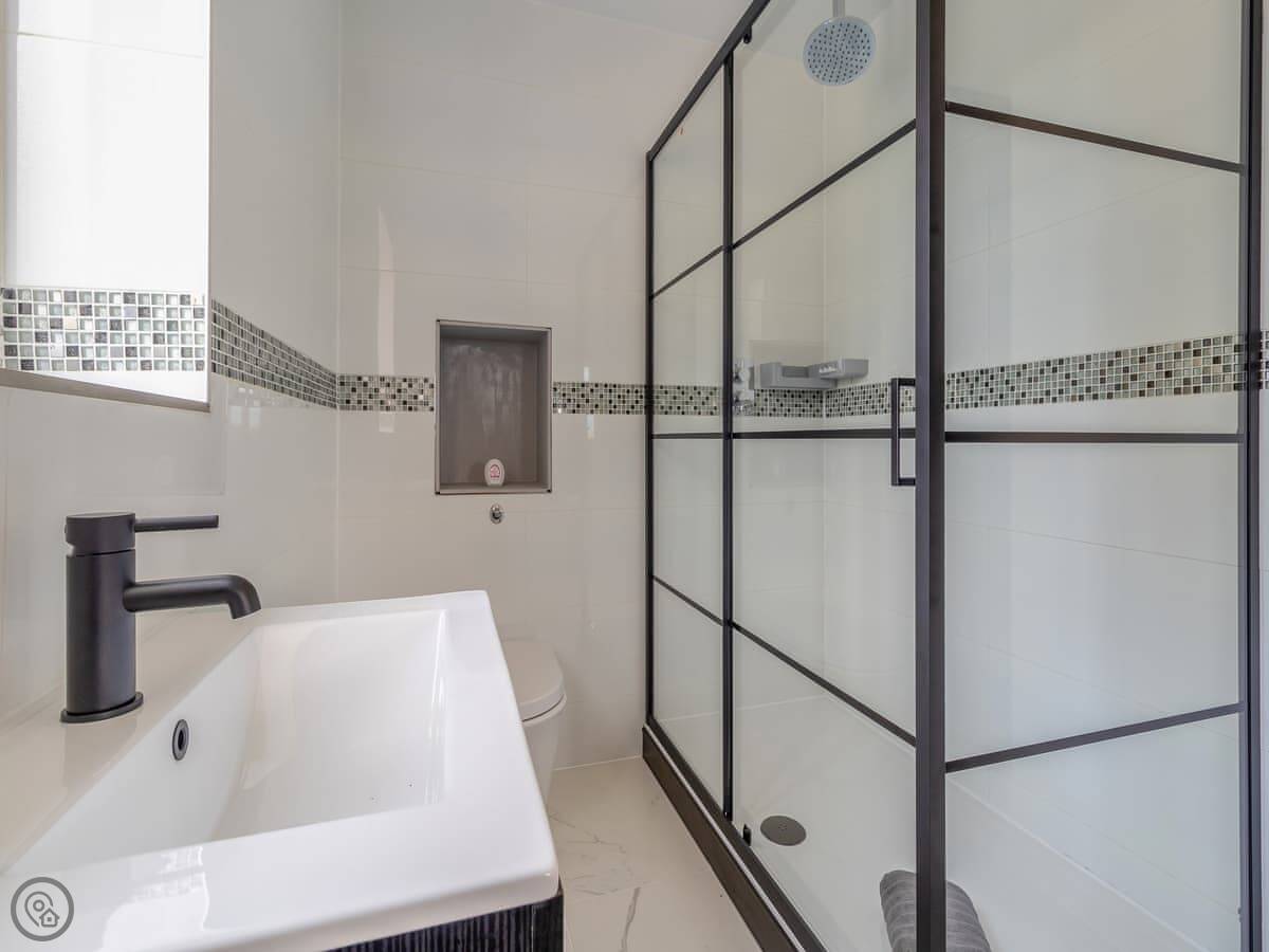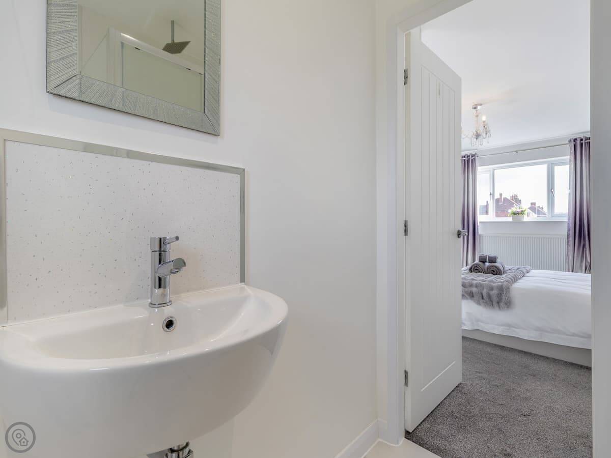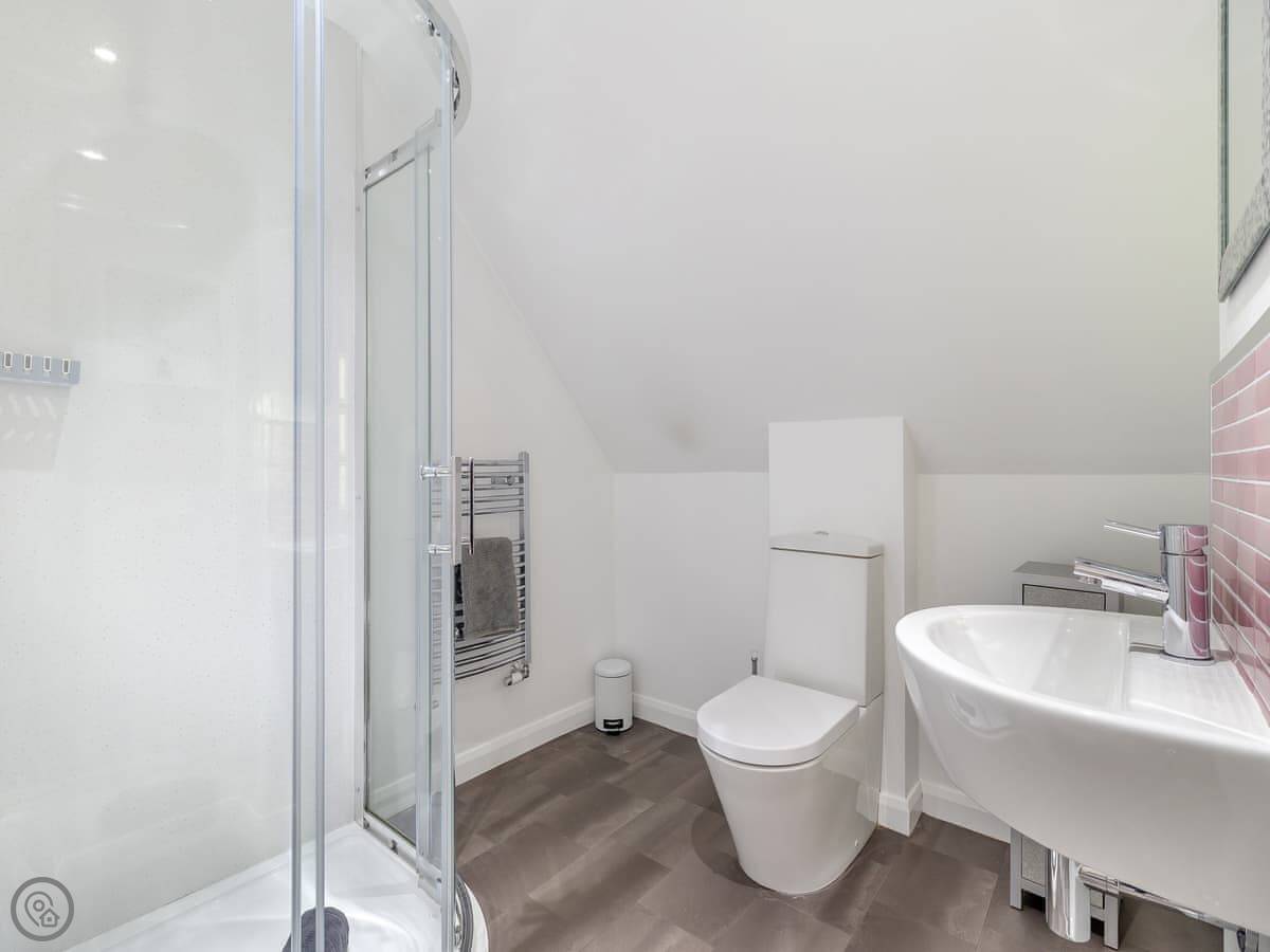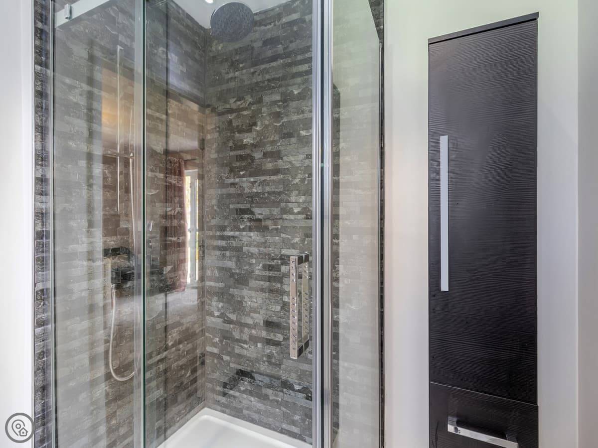 Four of the bedrooms have their own bathroom attached. One of the bedrooms is on the ground floor. The stairs to the top floor are fairly steep, just so you know if you've got anyone with limited mobility. There's parking for several cars on the drive.