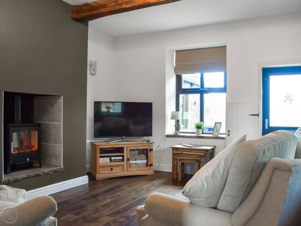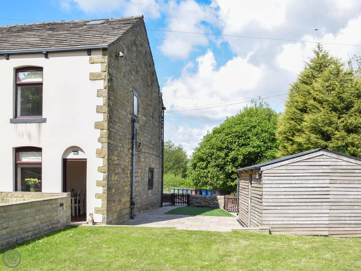 Doorstones Cottage is near Grains Bar. It’s on the edge of Saddleworth, about halfway between Uppermill and Greenfield. The cottage is semi-detached, part of a small row. There’s on-site parking for one car and a little garden at the back.