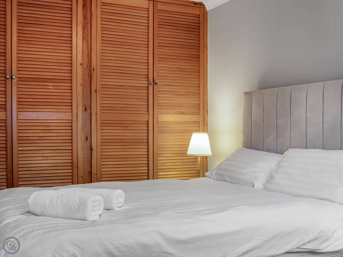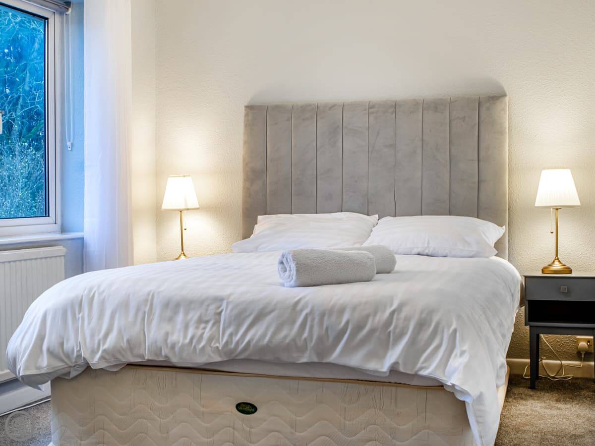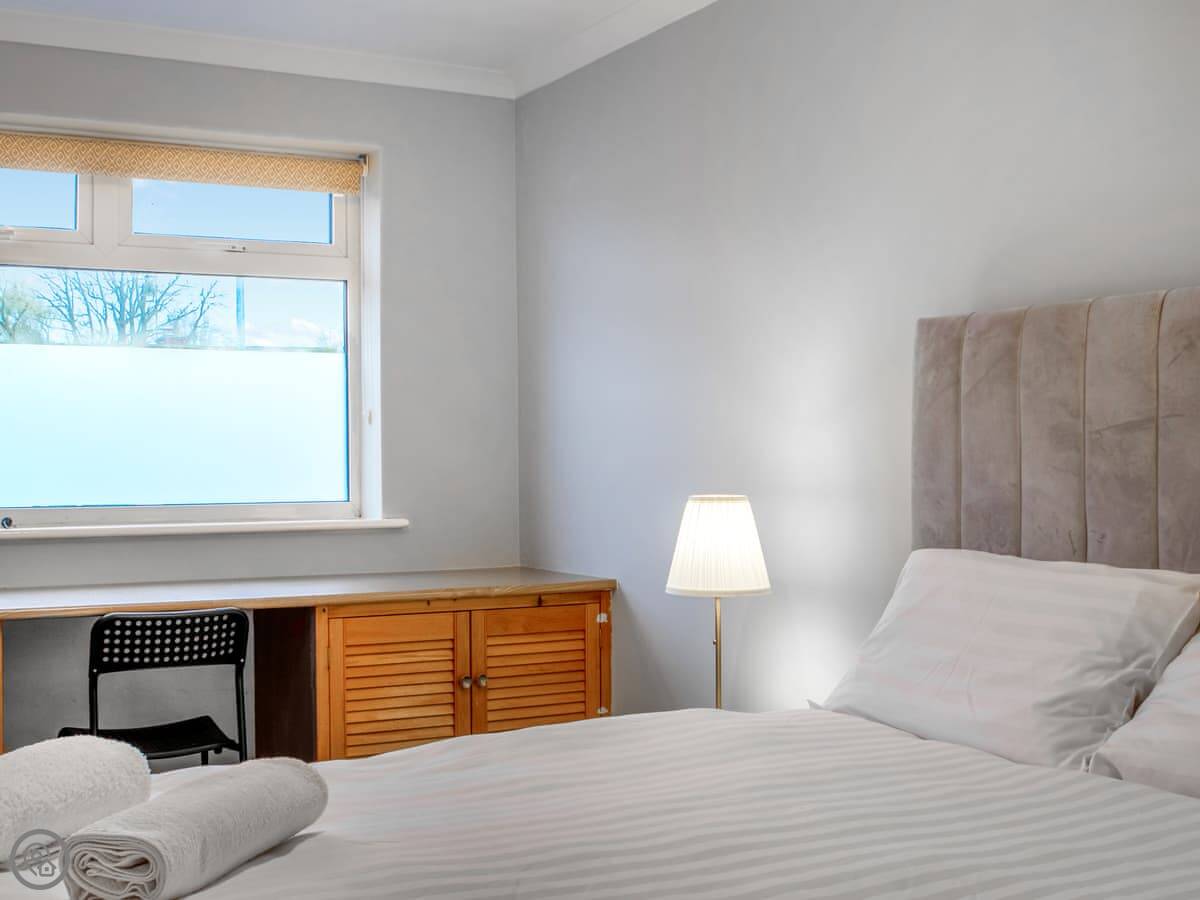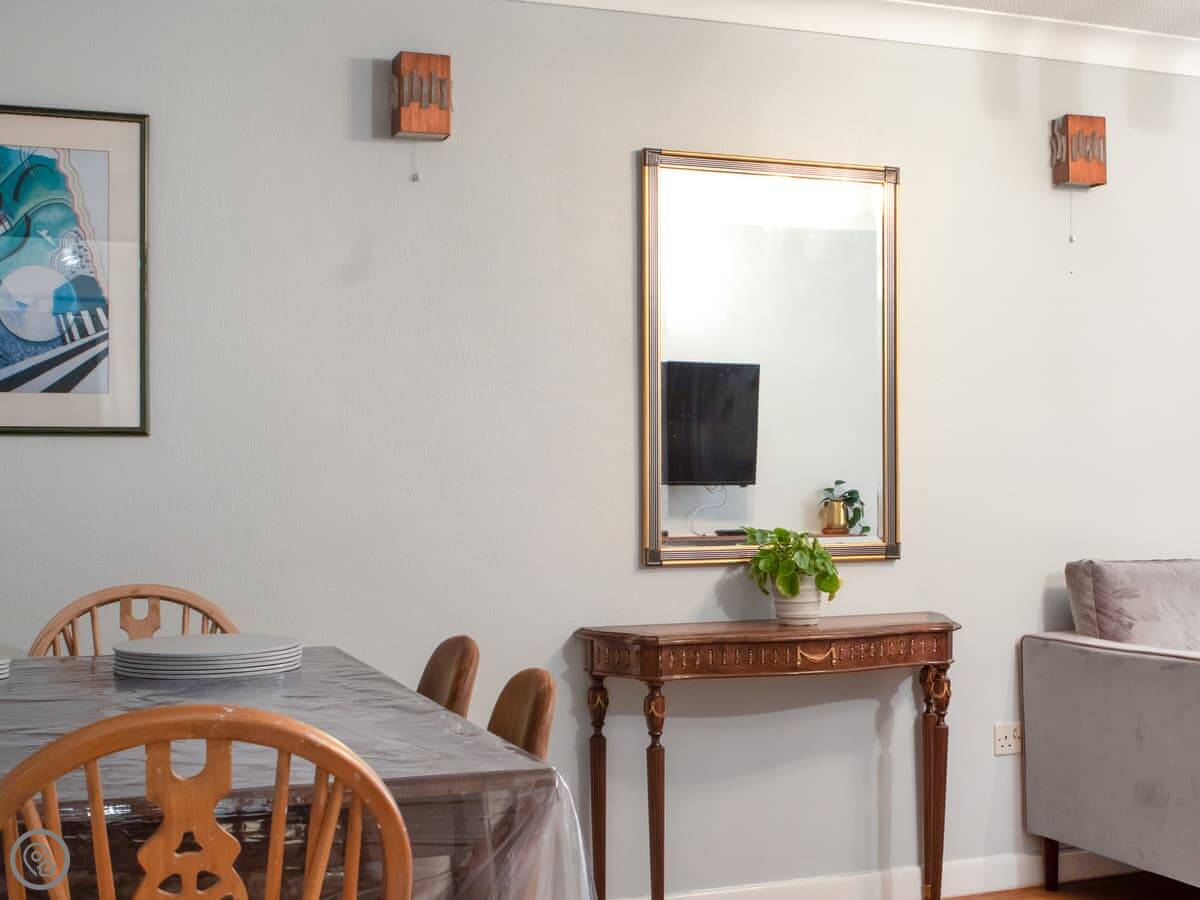 For facilities, it's got what you'd expect. Washing machine, TV, wifi. Bedding and towels are included. There's parking on the drive. No pets.