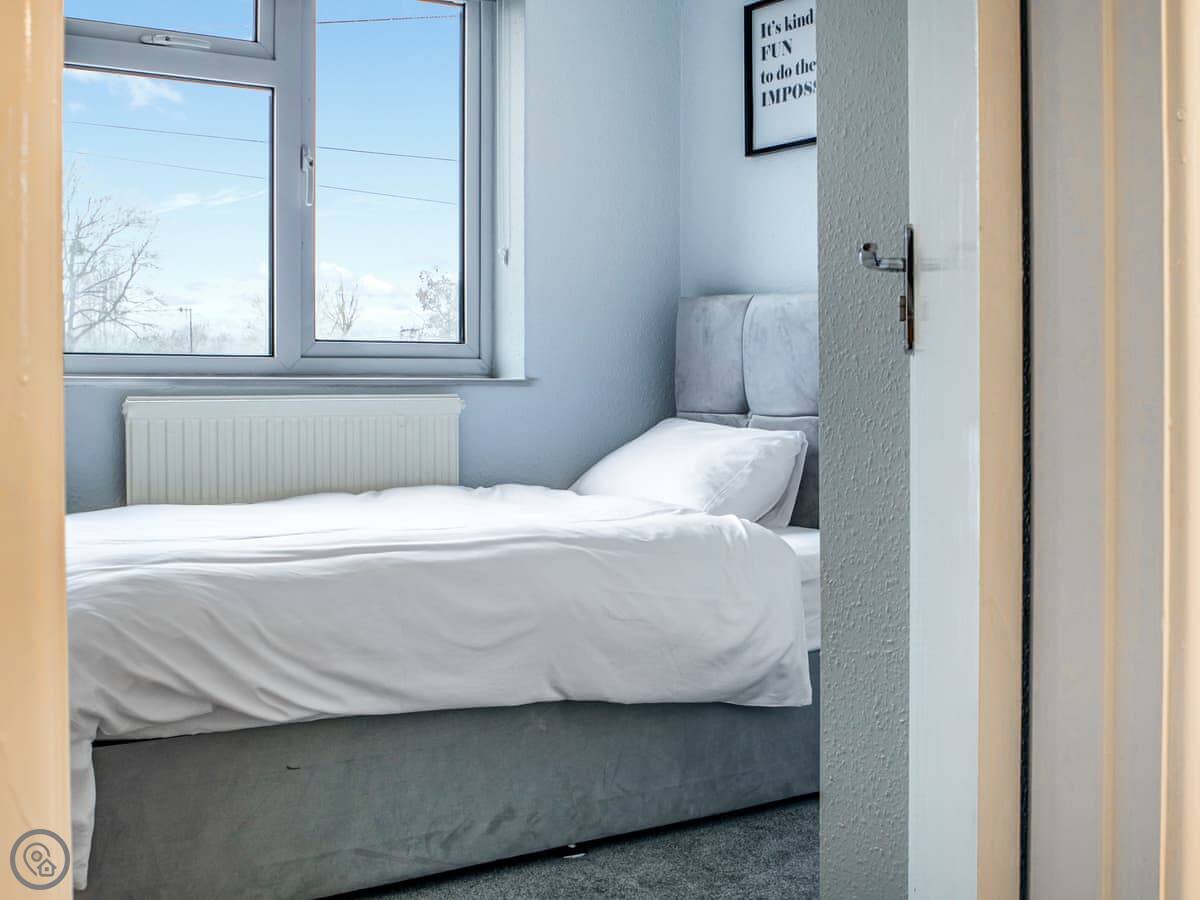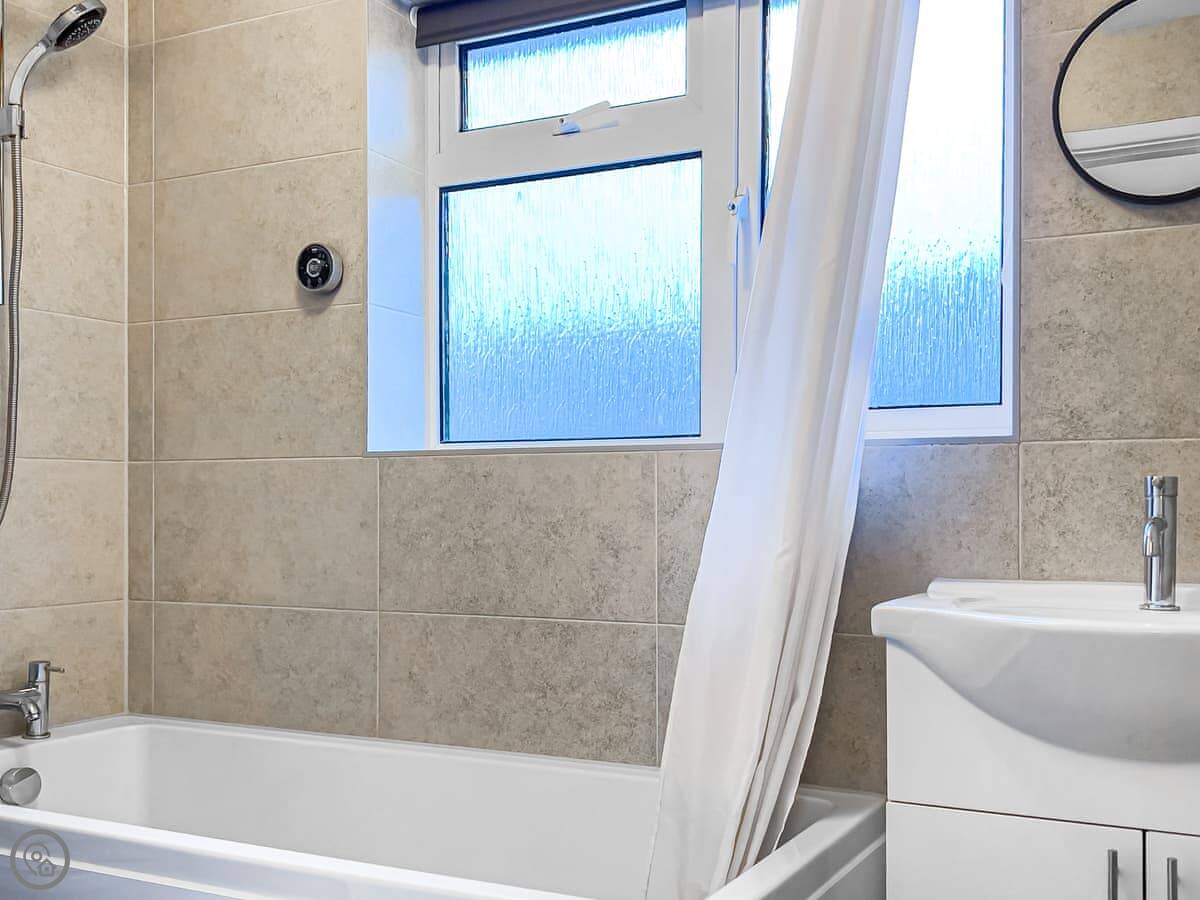 It sleeps seven. Four bedrooms and one bathroom. There's a separate downstairs loo as well. The rating is 3 Star. It's clean and works. It's not a show home.