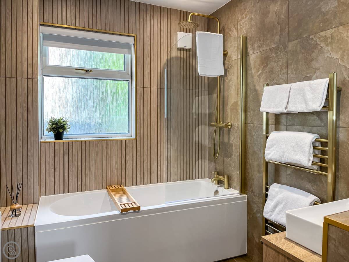 It sleeps four. There are two bedrooms and two bathrooms, which is handy. One bedroom has a super king bed, the other a double. It’s got a 4 Star rating, so it’s well-finished and comfortable.