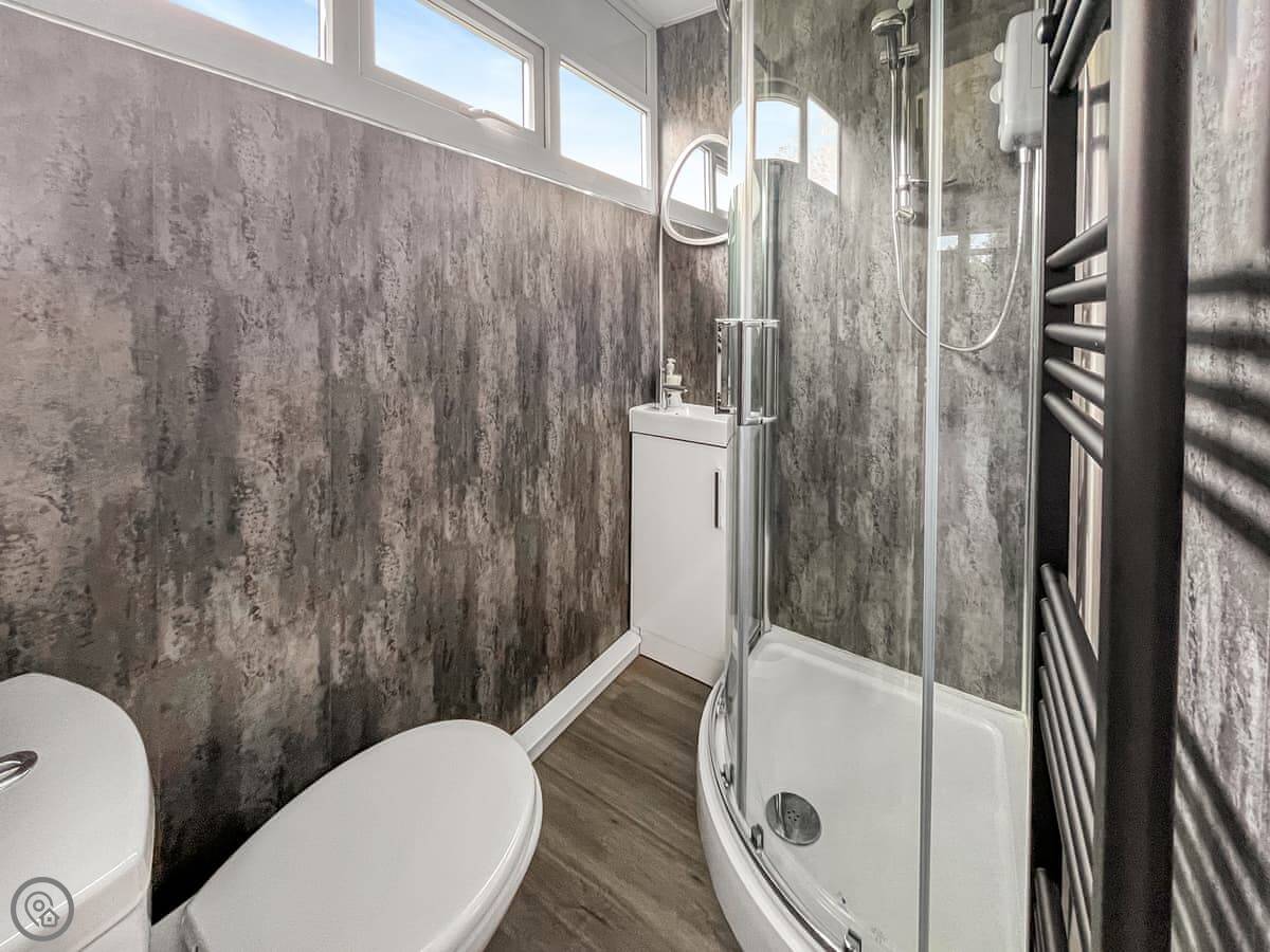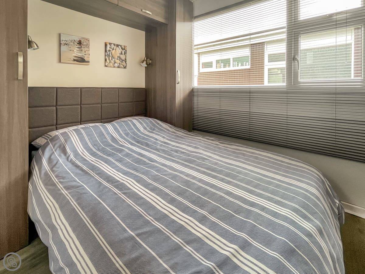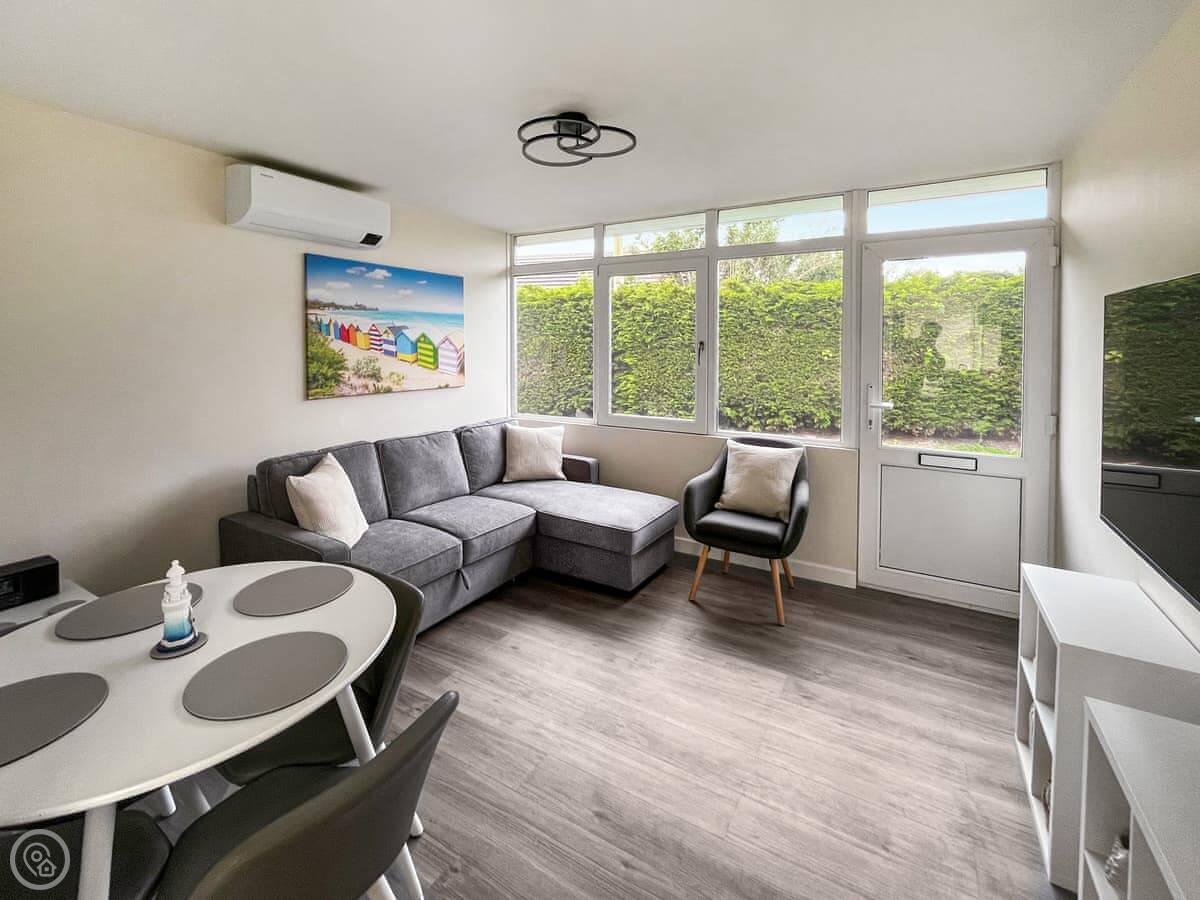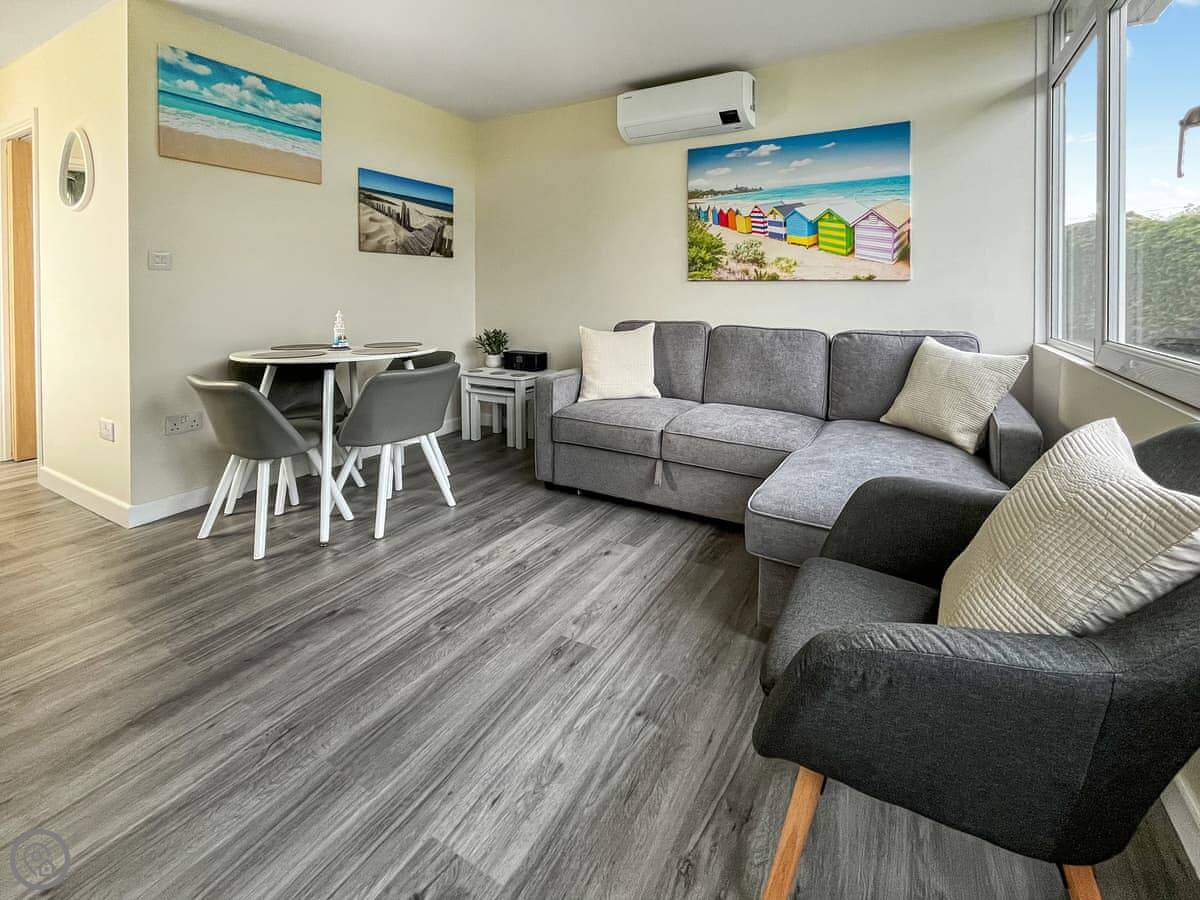 It sleeps six, but that's two bedrooms and a sofa bed in the living room. One double room, one twin. One bathroom with a shower. It's got a 4 Star rating. It's been done up recently, so it's clean and everything works properly. The air con is handy in summer.