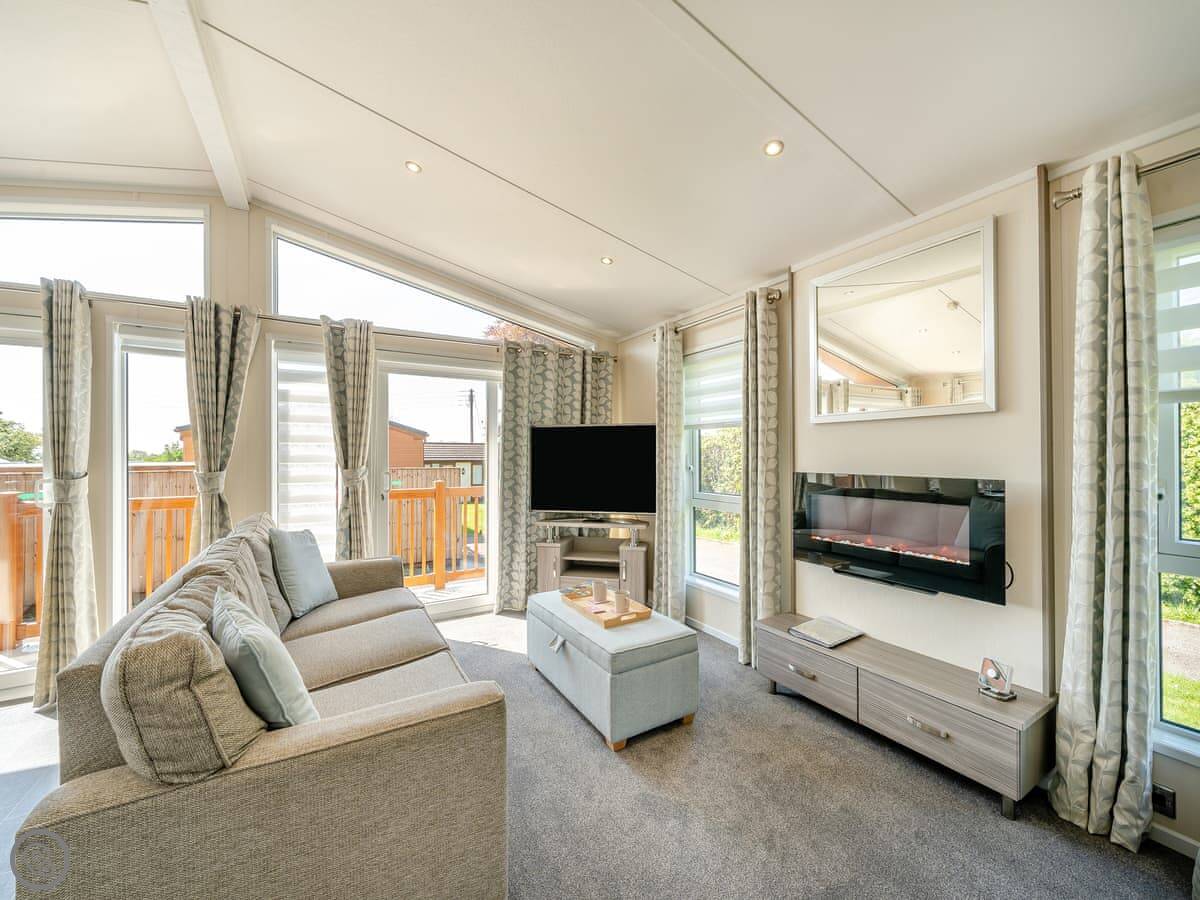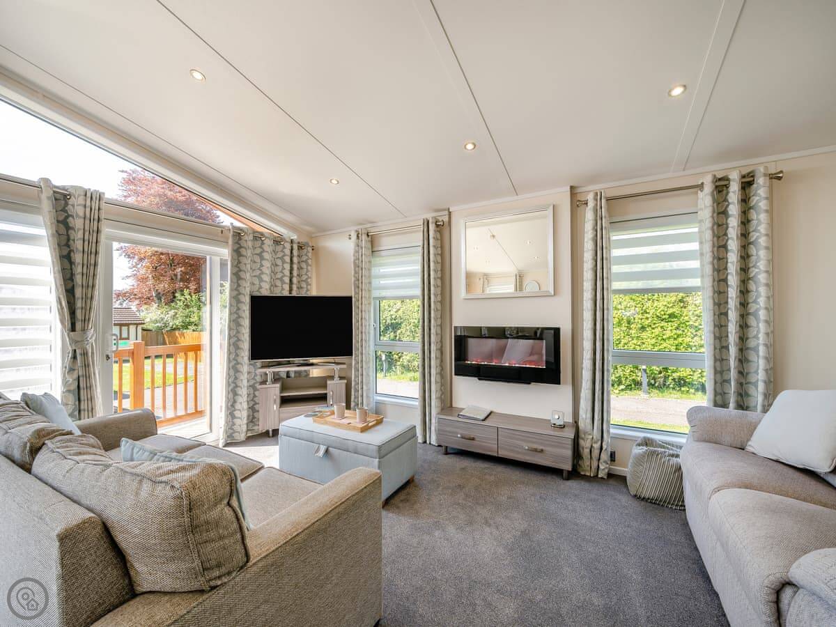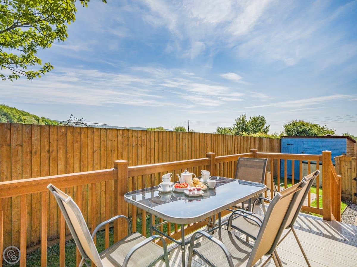 This is Rabbit Hole. It's on the edge of Cheddar, in Somerset. It's a single storey lodge, so no stairs, and it's detached. You get a private patio that looks out over the fields.