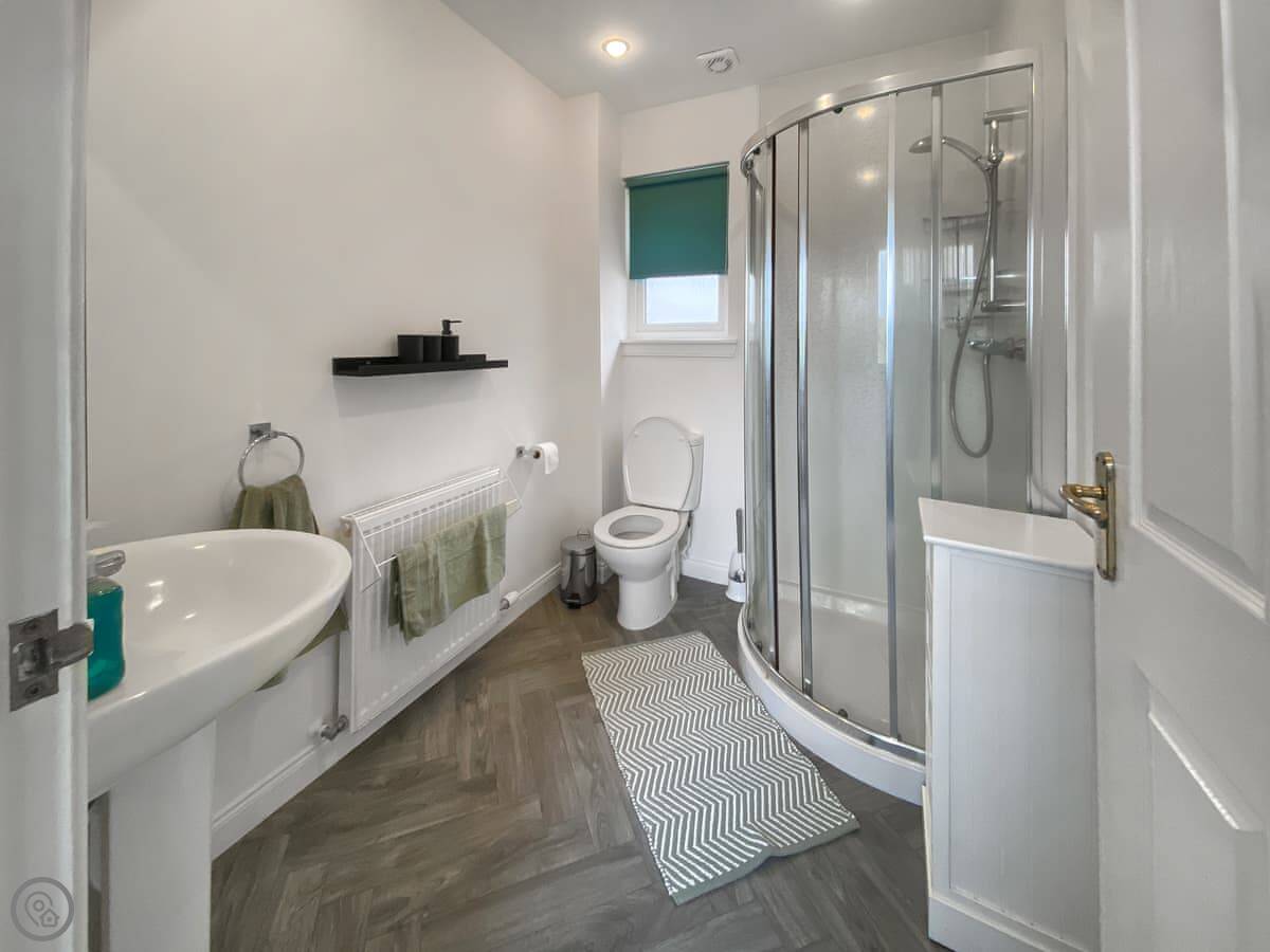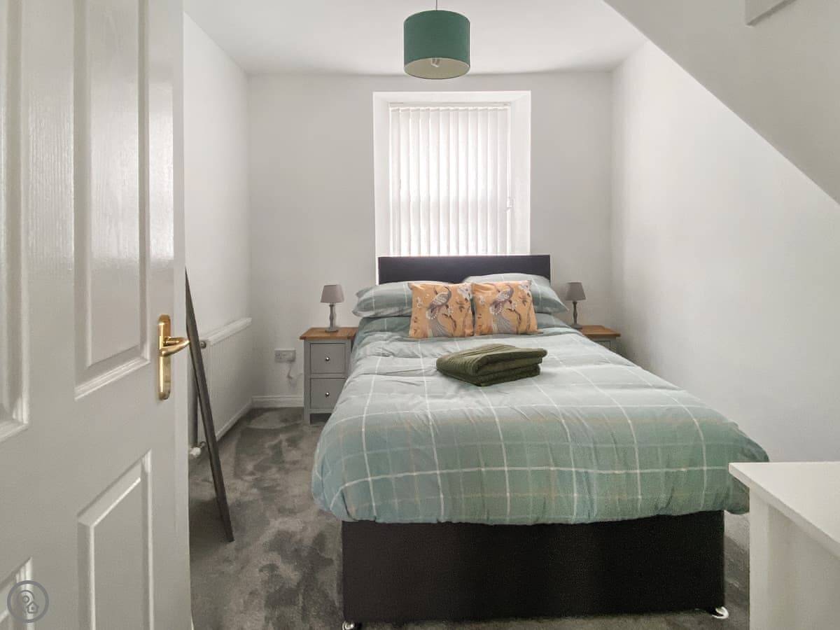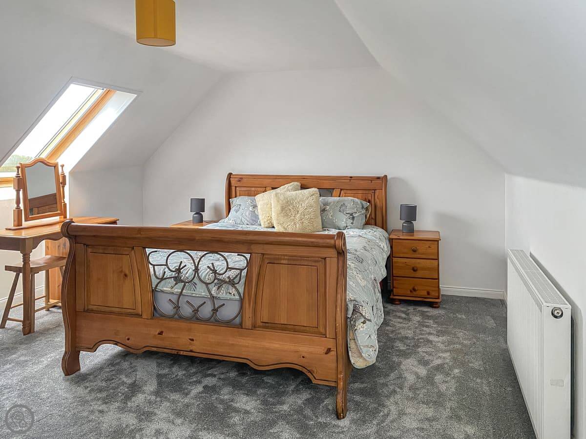 It sleeps four. Two bedrooms and one bathroom. It’s got a 4 Star rating, which means it's comfortable and well-equipped. The main bedroom is upstairs and has a double bed. The stairs are original, so they're a bit steeper than in a modern house.